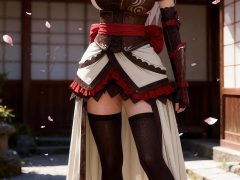 一个女生cosplay,完美身材,九头身比例,真人写真,真人版,身穿参考图中人物的衣服。人脸精度达毛孔级可见,写实真人,极致细节,衣服材质细腻,质感光照的摄影风格,HDR写实质感,肌理感,电影灯光效果,超写实摄影,oc渲染,明亮的照片风格。换个姿势,随机背景。