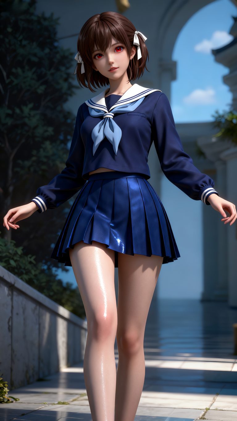 身穿参考图1中人物的服装和发型,使用参考图2中的体型和脸,少女,人物全身3D精美建模,国风3D建模脸,“加强脸部的立体效果”,精致的脸,3D高精度建模渲染皮肤,白皙柔嫩的皮肤,肌肤白嫩水光光泽,电影质感,体积光反射,光弥散,远景,绝世美女,写实真人,九头身模特身材,大长腿,大师杰作,细节清晰详尽,不要出现文字,随机pose,随机场景,魅惑的表情,oc渲染,辛烷值渲染,细节拉满,质感厚重,空气感,气质独特,动作诱人,随机元素堆叠组成,画面明亮。视觉盛宴,渲染直出。摄影后期处理。曼妙身材,大长腿,角色扮演,究极细节,大师级光影,真实服装效果,服装细节质感。3D国风动漫,细腻的皮肤,干净无暇的真实皮肤,CG渲染,氛围感,光感,自然姿势,HDR环境光,运用弥散光和轮廓光特写,采用光线追踪和电影光效呈现流体效果,伦勃朗光。成女体型。