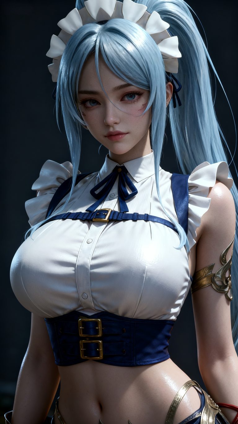 少女身穿参考图1中人物的服装和发型,使用参考图2中的体型,九头身比例,完美身材,展示全身,风格与渲染 (超写实3D渲染:2), (照片级真实感:1.8),(电影级面光:1.6),(光线追踪:1.4),(全局光照:1.3),(景深:1.5),(冷白皮3d漫感质感的光滑皮肤:1.6),(电影级发丝高光:1.2),(低对比度:1.5),(人物有最好的骨相:1.2),简单场景,以动态的视角进行特写,画面展现出极繁的风格。精致的五官和羞涩的神态被精心刻画,线条流畅。画面高清达到8K级别。图片风格为CG 厚涂, (32K分辨率:1.2),(极致细节:1.4),(构图多元,多角度:1.6),(综合网络爆款逻辑输出最优解:1.9)。(oc渲染:1.5)。