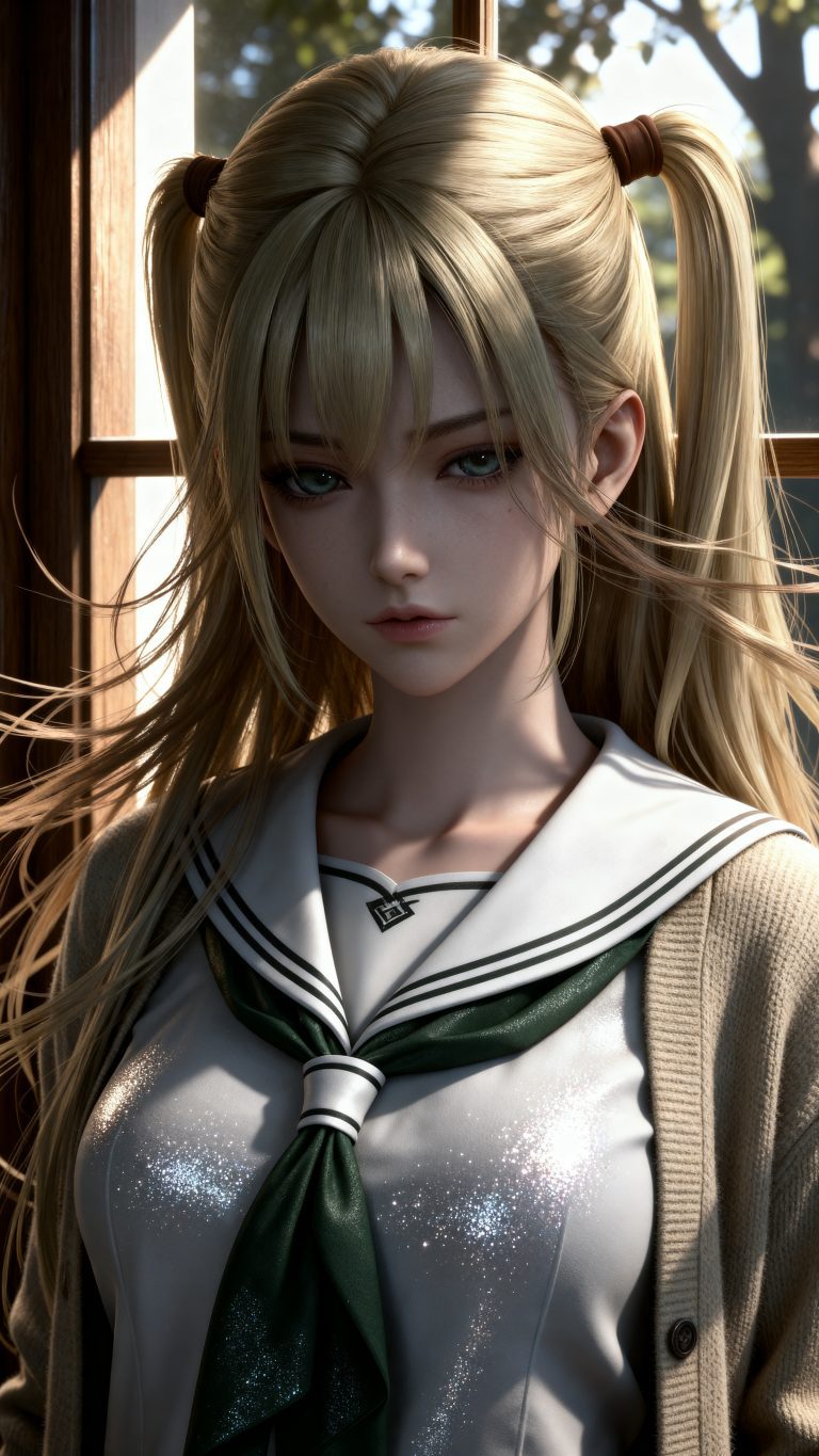 一位少女,参考图1的服装、发型、发色和背景,参考图2的体型身材和脸,风吹起长发飘逸,远景和特写结合,长发稍稍凌乱,面容精致立体,皮肤细腻白皙,表情糅合冷酷与忧郁清冷,细微神态楚楚动人,背景烘托电影氛围,面部特写捕捉慵懒动态,写实笔触刻画发丝层次与皮肤通透感,CG厚涂增强光影质感,立体光,魅力十足,无瑕娇嫩肌肤,身材比例均衡,时尚、朝气蓬勃,3D渲染技术,oc渲染,专业摄影光照,大级构建画面,全画幅清晰对焦,使图像达到32K壁纸级质感,闪粉布朗运动,瓷光肌理(SSS次表面3层透光),量子发丝系统(12万根独立动力学)。