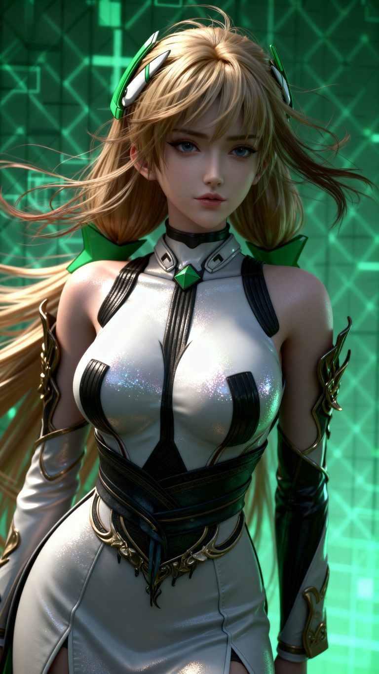 一位少女,严格参考图2的服装样式、发型、发色和背景,参考图1的体型身材,身材匀称,风吹起头发飘逸,远景和特写结合,头发稍稍凌乱,面容精致立体,带着妩媚,媚骨天成,皮肤细腻白皙,露出魅惑的表情,细微神态楚楚动人,背景烘托电影氛围,面部特写捕捉魅惑动态,写实笔触刻画发丝层次与皮肤通透感,CG厚涂增强光影质感,立体光,魅力十足,无瑕娇嫩肌肤,完美身材比例,九头身,时尚、朝气蓬勃,3D渲染技术,oc渲染,专业摄影光照,大级构建画面,全画幅清晰对焦,使图像达到32K壁纸级质感,闪粉布朗运动,瓷光肌理(SSS次表面3层透光),量子发丝系统(12万根独立动力学)。光线追踪。裸眼3D效果。