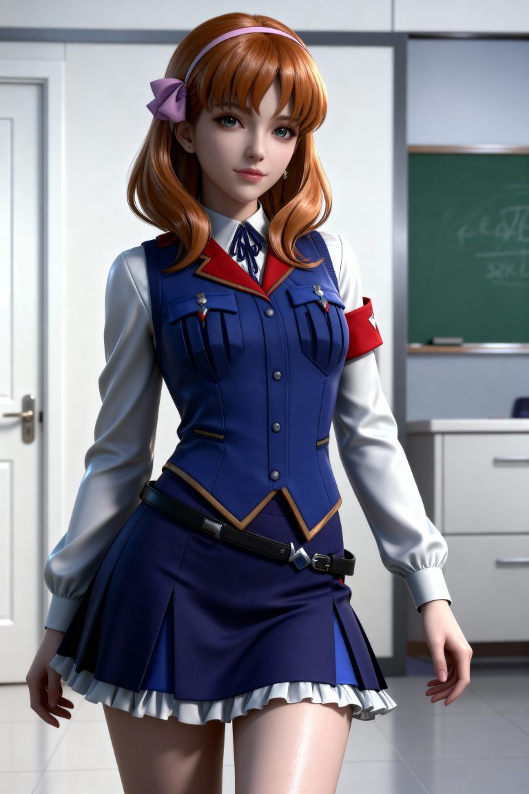 一位少女,严格参考图2的服装样式、发型、发色和背景,参考图1的风格,远景和特写结合,面容精致立体,带着妩媚,媚骨天成,皮肤细腻白皙,露出魅惑的表情,细微神态楚楚动人,背景烘托电影氛围,写实笔触刻画发丝层次与皮肤通透感,CG厚涂增强光影质感,立体光,魅力十足,无瑕娇嫩肌肤,成人身材,完美头身比例,九头身,大长腿,时尚、朝气蓬勃,3D渲染技术,oc渲染,专业摄影光照,大级构建画面,全画幅清晰对焦,使图像达到32K壁纸级质感,瓷光肌理(SSS次表面3层透光),量子发丝系统(12万根独立动力学)。光线追踪。裸眼3D效果。迎面光照。美白滤镜。