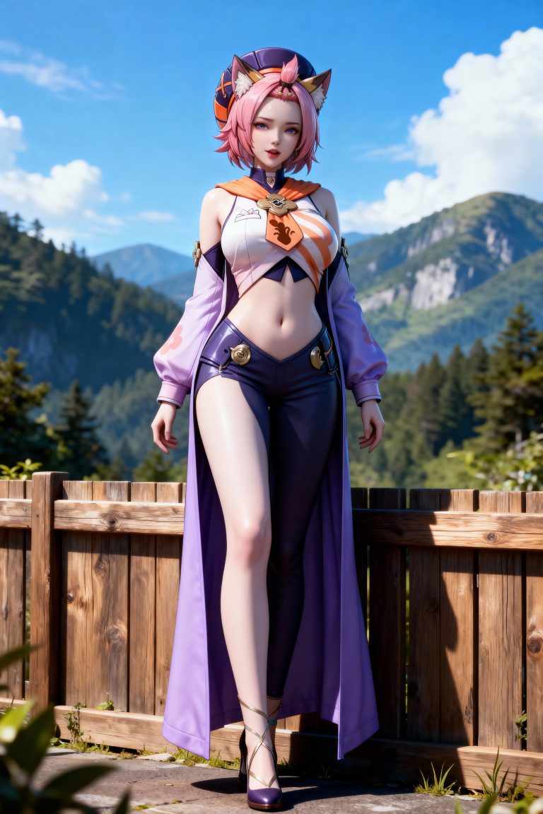 一位少女,严格参考图2的服装样式、发型、发色和背景,参考图1的风格,远景和特写结合,面容精致立体,带着妩媚,媚骨天成,皮肤细腻白皙,露出魅惑的表情,细微神态楚楚动人,背景烘托电影氛围,写实笔触刻画发丝层次与皮肤通透感,CG厚涂增强光影质感,立体光,真实光照,魅力十足,无瑕娇嫩肌肤,成人身材,完美头身比例,九头身,大长腿,时尚、朝气蓬勃,3D渲染技术,oc渲染,专业摄影光照,大级构建画面,全画幅清晰对焦,使图像达到32K壁纸级质感,瓷光肌理(SSS次表面3层透光),量子发丝系统(12万根独立动力学)。光线追踪。裸眼3D效果。迎面光照。美白滤镜。