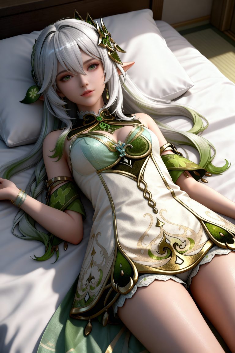 一位少女,严格参考图2的服装样式、发型、发色和背景,参考图1的风格,远景和特写结合,面容精致立体,带着妩媚,媚骨天成,皮肤细腻白皙,露出魅惑的表情,细微神态楚楚动人,背景烘托电影氛围,写实笔触刻画发丝层次与皮肤通透感,CG厚涂增强光影质感,立体光,真实光照,魅力十足,无瑕娇嫩肌肤,成人身材,完美头身比例,九头身,大长腿,时尚、朝气蓬勃,3D渲染技术,oc渲染,专业摄影光照,大级构建画面,全画幅清晰对焦,使图像达到32K壁纸级质感,瓷光肌理(SSS次表面3层透光),量子发丝系统(12万根独立动力学)。光线追踪。裸眼3D效果。迎面光照。美白滤镜。