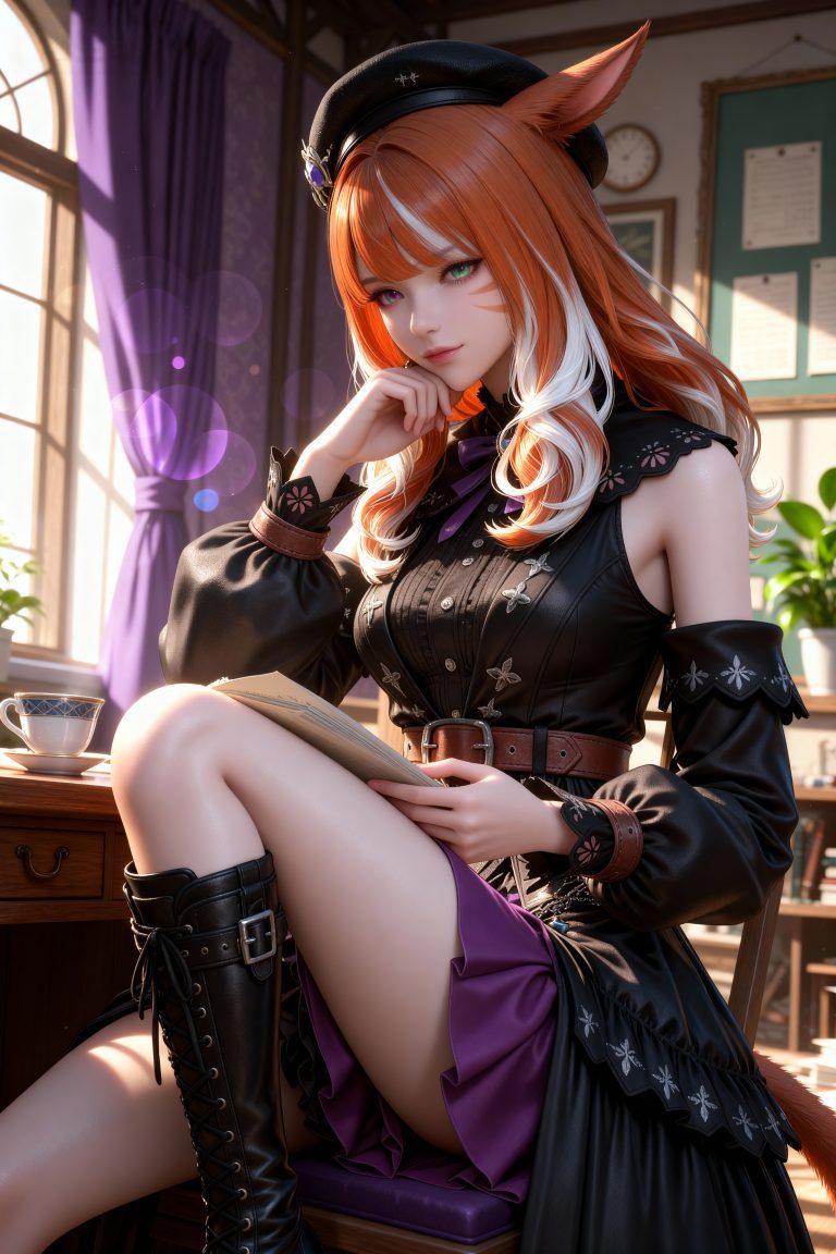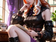一位少女,严格参考图2的服装样式、发型、发色和背景,参考图1的风格,远景和特写结合,面容精致立体,带着妩媚,媚骨天成,皮肤细腻白皙,露出魅惑的表情,细微神态楚楚动人,背景烘托电影氛围,写实笔触刻画发丝层次与皮肤通透感,CG厚涂增强光影质感,立体光,真实光照,魅力十足,无瑕娇嫩肌肤,成人身材,完美头身比例,九头身,大长腿,时尚、朝气蓬勃,3D渲染技术,oc渲染,专业摄影光照,大级构建画面,全画幅清晰对焦,使图像达到32K壁纸级质感,瓷光肌理(SSS次表面3层透光),量子发丝系统(12万根独立动力学)。光线追踪。裸眼3D效果。迎面光照。美白滤镜。高对比度,赛璐璐风格