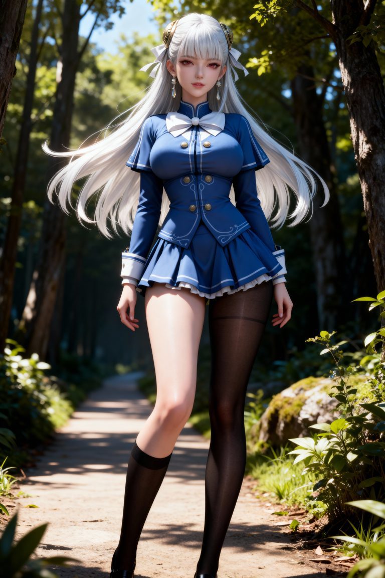 一位少女,严格参考图2的服装样式、发型、发色和背景,参考图1的风格,远景和特写结合,面容精致立体,带着妩媚,媚骨天成,皮肤细腻白皙,露出魅惑的表情,细微神态楚楚动人,背景烘托电影氛围,写实笔触刻画发丝层次与皮肤通透感,CG厚涂增强光影质感,立体光,真实光照,魅力十足,无瑕娇嫩肌肤,成人身材,完美头身比例,九头身,大长腿,时尚、朝气蓬勃,3D渲染技术,oc渲染,专业摄影光照,大级构建画面,全画幅清晰对焦,使图像达到32K壁纸级质感,瓷光肌理(SSS次表面3层透光),量子发丝系统(12万根独立动力学)。光线追踪。裸眼3D效果。迎面光照。美白滤镜。高对比度,赛璐璐风格