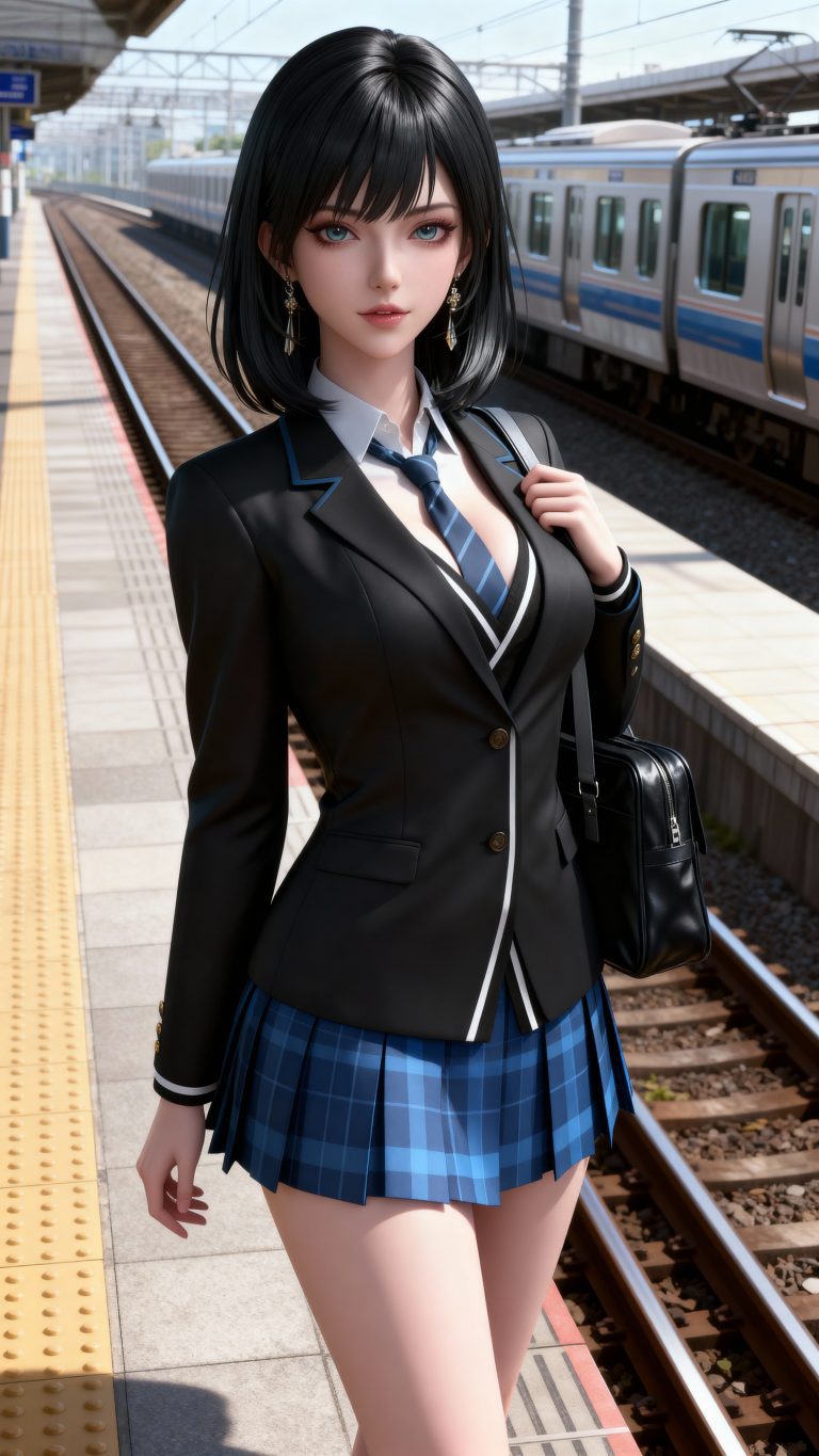 一位少女,严格参考图2的服装样式、发型、发色和背景,参考图1的风格,远景和特写结合,面容精致立体,带着妩媚,媚骨天成,皮肤细腻白皙,露出魅惑的表情,细微神态楚楚动人,背景烘托电影氛围,写实笔触刻画发丝层次与皮肤通透感,CG厚涂增强光影质感,立体光,真实光照,魅力十足,无瑕娇嫩肌肤,成人身材,完美头身比例,九头身,大长腿,时尚、朝气蓬勃,3D渲染技术,oc渲染,专业摄影光照,大级构建画面,全画幅清晰对焦,使图像达到32K壁纸级质感,瓷光肌理(SSS次表面3层透光),量子发丝系统(12万根独立动力学)。光线追踪。裸眼3D效果。迎面光照。美白滤镜。高对比度,赛璐璐风格。