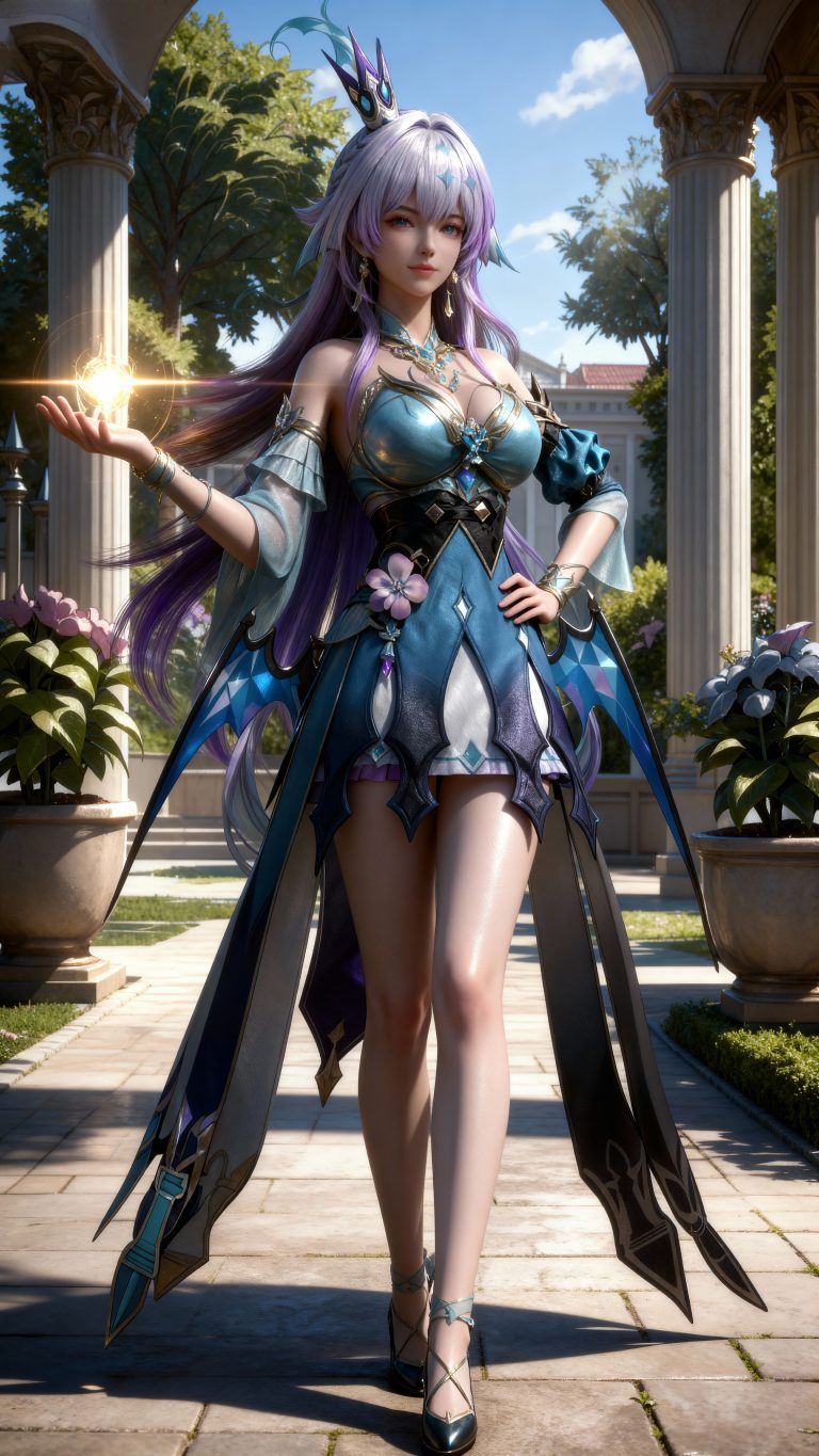 一位少女,严格参考图2的服装样式、发型、发色和背景,参考图1的风格,远景和特写结合,面容精致立体,带着妩媚,媚骨天成,皮肤细腻白皙,露出魅惑的表情,细微神态楚楚动人,背景烘托电影氛围,写实笔触刻画发丝层次与皮肤通透感,CG厚涂增强光影质感,立体光,真实光照,魅力十足,无瑕娇嫩肌肤,成人身材,完美头身比例,九头身,大长腿,时尚、朝气蓬勃,3D渲染技术,oc渲染,专业摄影光照,大级构建画面,全画幅清晰对焦,使图像达到32K壁纸级质感,瓷光肌理(SSS次表面3层透光),量子发丝系统(12万根独立动力学)。光线追踪。裸眼3D效果。迎面光照。美白滤镜。高对比度,赛璐璐风格。