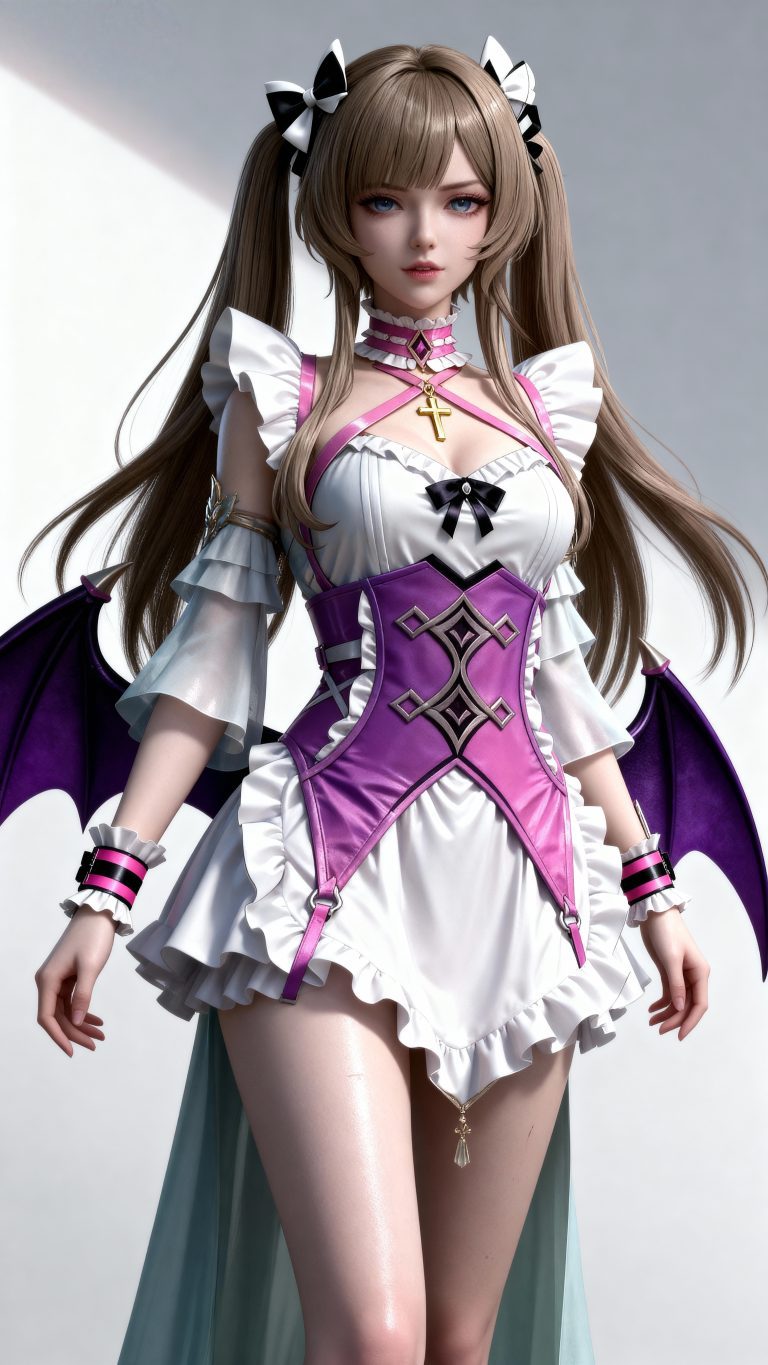 一位少女,严格参考图2的服装样式、发型、发色和背景,参考图1的风格,远景和特写结合,面容精致立体,带着妩媚,媚骨天成,皮肤细腻白皙,露出魅惑的表情,细微神态楚楚动人,背景烘托电影氛围,写实笔触刻画发丝层次与皮肤通透感,CG厚涂增强光影质感,立体光,真实光照,魅力十足,无瑕娇嫩肌肤,成人身材,完美头身比例,九头身,大长腿,时尚、朝气蓬勃,3D渲染技术,oc渲染,专业摄影光照,大级构建画面,全画幅清晰对焦,使图像达到32K壁纸级质感,瓷光肌理(SSS次表面3层透光),量子发丝系统(12万根独立动力学)。光线追踪。裸眼3D效果。迎面光照。美白滤镜。高对比度,赛璐璐风格。
