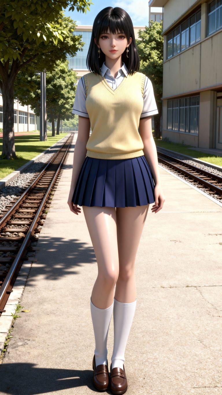 一位少女,严格参考图2的服装样式、发型、发色和背景,参考图1的风格,远景和特写结合,面容精致立体,带着妩媚,媚骨天成,皮肤细腻白皙,露出魅惑的表情,细微神态楚楚动人,背景烘托电影氛围,写实笔触刻画发丝层次与皮肤通透感,CG厚涂增强光影质感,立体光,真实光照,魅力十足,无瑕娇嫩肌肤,成人身材,完美头身比例,九头身,大长腿,时尚、朝气蓬勃,3D渲染技术,oc渲染,专业摄影光照,大级构建画面,全画幅清晰对焦,使图像达到32K壁纸级质感,瓷光肌理(SSS次表面3层透光),量子发丝系统(12万根独立动力学)。光线追踪。裸眼3D效果。迎面光照。美白滤镜。高对比度,赛璐璐风格。