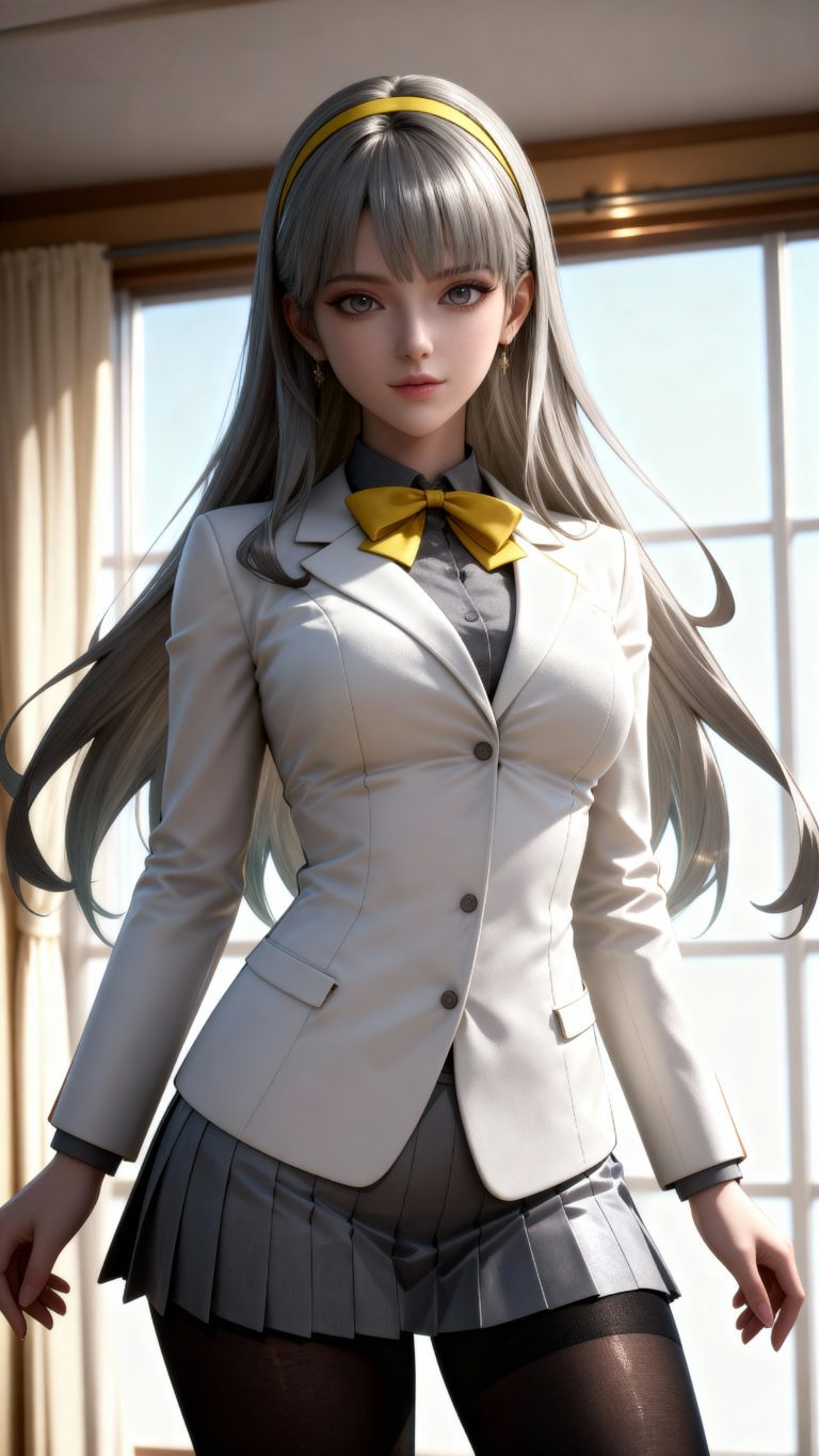 一位少女,严格参考图2的服装样式、发型、发色和背景,参考图1的风格,远景和特写结合,面容精致立体,带着妩媚,媚骨天成,皮肤细腻白皙,露出魅惑的表情,细微神态楚楚动人,背景烘托电影氛围,写实笔触刻画发丝层次与皮肤通透感,CG厚涂增强光影质感,立体光,真实光照,魅力十足,无瑕娇嫩肌肤,成人身材,完美头身比例,九头身,大长腿,时尚、朝气蓬勃,3D渲染技术,oc渲染,专业摄影光照,大级构建画面,全画幅清晰对焦,使图像达到32K壁纸级质感,瓷光肌理(SSS次表面3层透光),量子发丝系统(12万根独立动力学)。光线追踪。裸眼3D效果。迎面光照。美白滤镜。高对比度,赛璐璐风格。