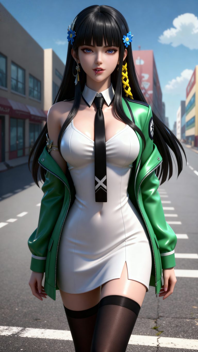 一位少女,严格参考图2的服装样式、发型、发色和背景,参考图1的风格,远景和特写结合,面容精致立体,带着妩媚,媚骨天成,皮肤细腻白皙,露出魅惑的表情,细微神态楚楚动人,背景烘托电影氛围,写实笔触刻画发丝层次与皮肤通透感,CG厚涂增强光影质感,立体光,真实光照,魅力十足,无瑕娇嫩肌肤,成人身材,完美头身比例,九头身,大长腿,时尚、朝气蓬勃,3D渲染技术,oc渲染,专业摄影光照,大级构建画面,全画幅清晰对焦,使图像达到32K壁纸级质感,瓷光肌理(SSS次表面3层透光),量子发丝系统(12万根独立动力学)。光线追踪。裸眼3D效果。迎面光照。美白滤镜。高对比度,赛璐璐风格。