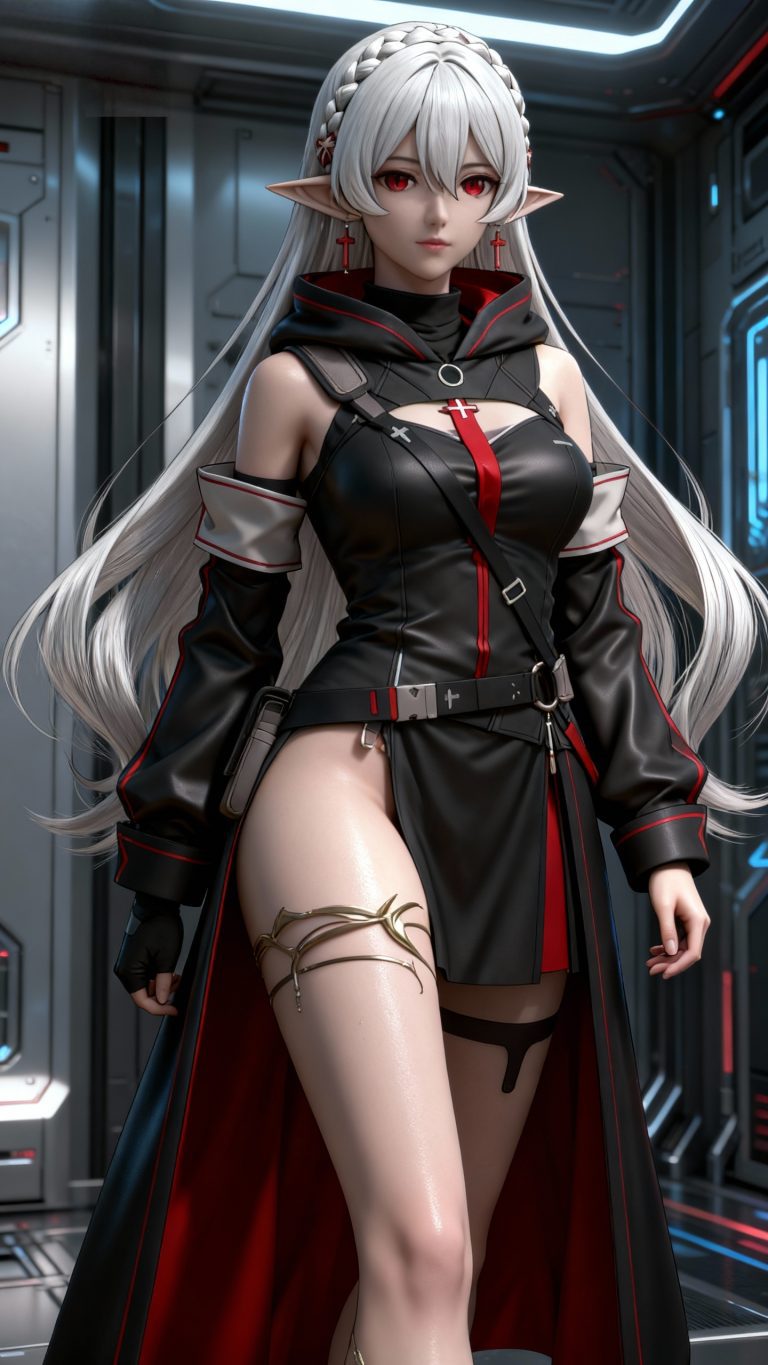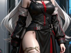 参考图2的服装样式、发型、发色和背景,画面风格参考图1,远景展现少女动态身姿,特写刻画妩媚表情,面容精致立体,媚骨天成,皮肤细腻白皙,细微神态楚楚动人,背景烘托电影氛围,写实笔触刻画发丝层次与皮肤通透感,CG厚涂增强光影质感,成人身材,九头身比例,大长腿,3D渲染,OC渲染,专业摄影光照,全画幅清晰对焦,32K壁纸级质感,瓷光肌理(SSS次表面3层透光),量子发丝系统(12万根独立动力学),光线追踪,裸眼3D效果,美白滤镜,高对比度,赛璐璐风格,人物描边,庵野秀明风格