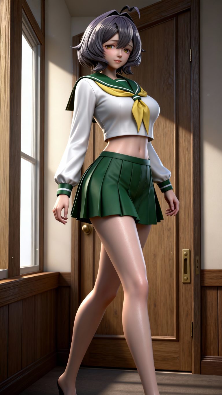 参考图2的服装样式、发型、发色和背景,仅画面风格参考图1,远景展现少女动态身姿,特写刻画妩媚表情,面容精致立体,媚骨天成,皮肤细腻白皙,细微神态楚楚动人,背景烘托电影氛围,写实笔触刻画发丝层次与皮肤通透感,CG厚涂增强光影质感,成人身材,九头身比例,大长腿,3D渲染,OC渲染,专业摄影光照,全画幅清晰对焦,32K壁纸级质感,瓷光肌理(SSS次表面3层透光),量子发丝系统(12万根独立动力学),光线追踪,裸眼3D效果,美白滤镜,高对比度,赛璐璐风格,庵野秀明风格