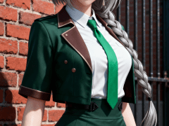 生成图片,一位少女,人物严格参考图2的服装样式、发型、发色和背景,仅仅画面风格参考参考图1,远景和特写结合,面容精致立体,带着妩媚,媚骨天成,皮肤细腻白皙,露出魅惑的表情,细微神态楚楚动人,背景烘托电影氛围,写实笔触刻画发丝层次与皮肤通透感,CG厚涂增强光影质感,魅力十足,无瑕娇嫩肌肤,成人身材,完美头身比例,九头身,大长腿,时尚、朝气蓬勃,3D渲染技术,oc渲染,专业摄影光照,大级构建画面,全画幅清晰对焦,使图像达到32K壁纸级质感,瓷光肌理(SSS次表面3层透光),量子发丝系统(12万根独立动力学)。光线追踪。裸眼3D效果。美白滤镜。高对比度,鸣潮风格。