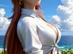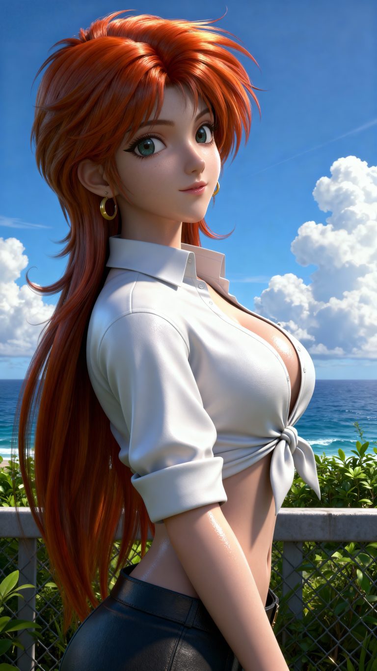 生成图片,一位少女,人物严格参考图2的服装样式、发型、发色和背景,仅仅画面风格参考参考图1,远景和特写结合,面容精致立体,带着妩媚,媚骨天成,皮肤细腻白皙,露出魅惑的表情,细微神态楚楚动人,背景烘托电影氛围,写实笔触刻画发丝层次与皮肤通透感,CG厚涂增强光影质感,魅力十足,无瑕娇嫩肌肤,成人身材,完美头身比例,九头身,大长腿,时尚、朝气蓬勃,3D渲染技术,oc渲染,专业摄影光照,大级构建画面,全画幅清晰对焦,使图像达到32K壁纸级质感,瓷光肌理(SSS次表面3层透光),量子发丝系统(12万根独立动力学)。光线追踪。裸眼3D效果。美白滤镜。高对比度,鸣潮风格。