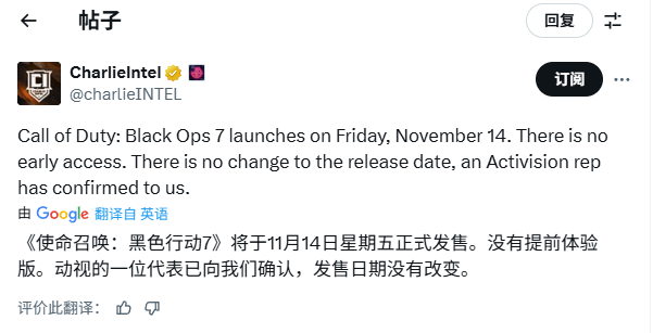 外媒CharlieIntel作为可靠的消息源,进一步坐实了这一事实。该账号在X上发文道:“《使命召唤:黑色行动7》将于11月14日(星期五)发售。没有抢先体验,也没有发售日期变动。”这一声明直接源于动视代表的内部确认,避免了社区进一步的猜测与失望。TheGhostofHope的爆料虽曾引发热议,但也暴露了泄密生态的“双刃剑”属性:一方面,它能提前吊起胃口;另一方面,频繁的“乌龙”事件正考验玩家耐心。动视的快速辟谣,体现了公司在公关上的成熟——在《黑色行动6》热映余温未散之际,他们不愿因谣言干扰新作的节奏。