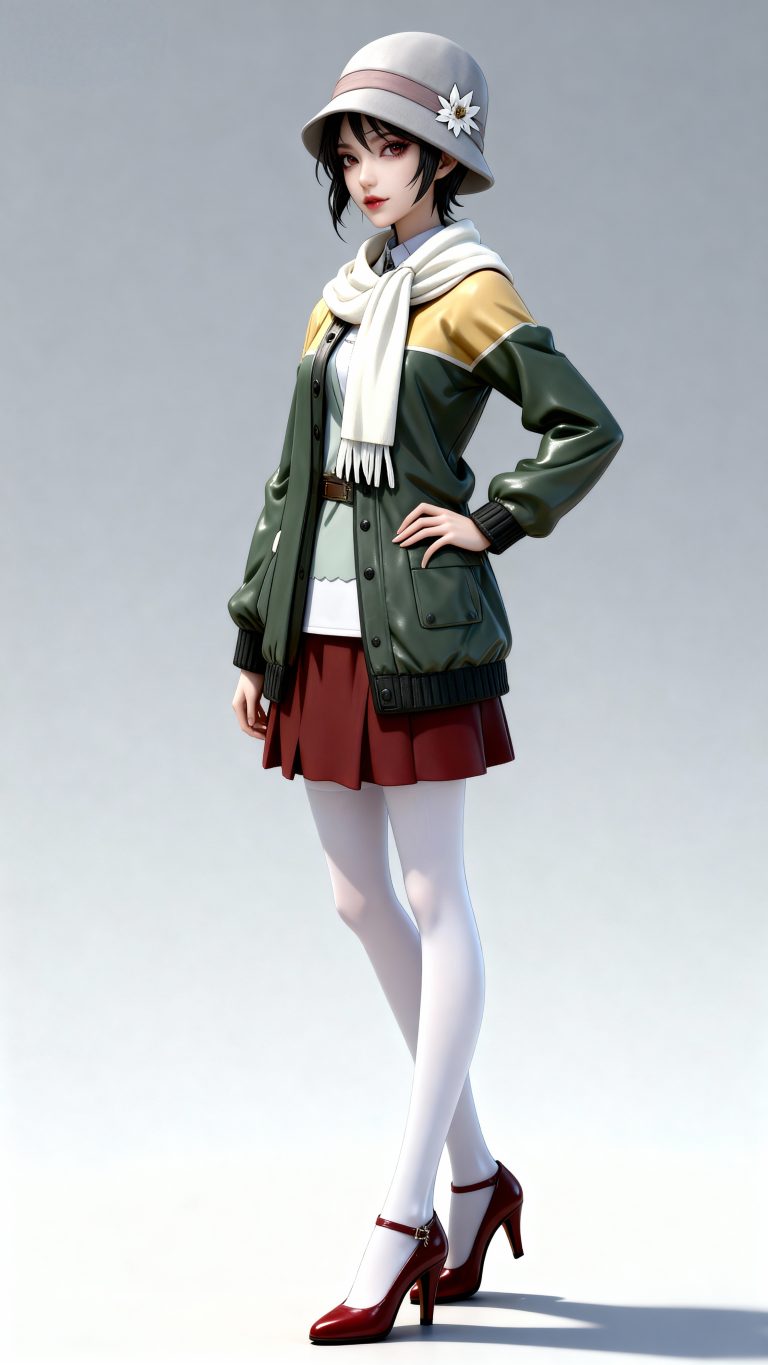 生成图片,一位少女,人物严格参考图2的服装样式、发型、发色和背景,仅仅画面风格参考参考图1,远景和特写结合,面容精致立体,带着妩媚,媚骨天成,皮肤细腻白皙,露出魅惑的表情,细微神态楚楚动人,背景烘托电影氛围,写实笔触刻画发丝层次与皮肤通透感,CG厚涂增强光影质感,魅力十足,无瑕娇嫩肌肤,成人身材,完美头身比例,九头身,大长腿,时尚、朝气蓬勃,3D渲染技术,oc渲染,专业摄影光照,大级构建画面,全画幅清晰对焦,使图像达到32K壁纸级质感,瓷光肌理(SSS次表面3层透光),量子发丝系统(12万根独立动力学)。光线追踪。裸眼3D效果。美白滤镜。高对比度,鸣潮风格。bjd质感
