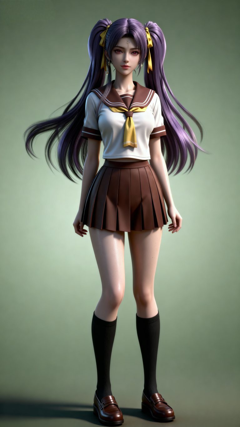 生成图片,一位少女,人物严格参考图2的服装样式、发型、发色和背景,仅仅画面风格参考参考图1,远景和特写结合,面容精致立体,带着妩媚,媚骨天成,皮肤细腻白皙,露出魅惑的表情,细微神态楚楚动人,背景烘托电影氛围,写实笔触刻画发丝层次与皮肤通透感,CG厚涂增强光影质感,魅力十足,无瑕娇嫩肌肤,成人身材,完美头身比例,九头身,大长腿,时尚、朝气蓬勃,3D渲染技术,oc渲染,专业摄影光照,大级构建画面,全画幅清晰对焦,使图像达到32K壁纸级质感,瓷光肌理(SSS次表面3层透光),量子发丝系统(12万根独立动力学)。光线追踪。裸眼3D效果。美白滤镜。高对比度,鸣潮风格。bjd质感,线条描边