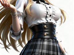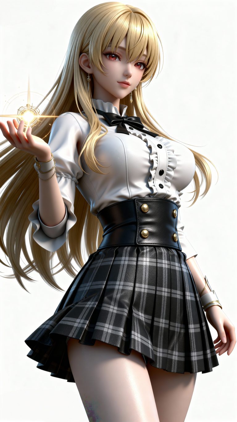 生成图片,一位少女,人物严格参考图2的服装样式、发型、发色和背景,仅仅画面风格参考参考图1,远景和特写结合,面容精致立体,带着妩媚,媚骨天成,皮肤细腻白皙,露出魅惑的表情,细微神态楚楚动人,背景烘托电影氛围,写实笔触刻画发丝层次与皮肤通透感,CG厚涂增强光影质感,魅力十足,无瑕娇嫩肌肤,成人身材,完美头身比例,九头身,大长腿,时尚、朝气蓬勃,3D渲染技术,oc渲染,专业摄影光照,大级构建画面,全画幅清晰对焦,使图像达到32K壁纸级质感,瓷光肌理(SSS次表面3层透光),量子发丝系统(12万根独立动力学)。光线追踪。裸眼3D效果。美白滤镜。高对比度,鸣潮风格。bjd质感,立体描边