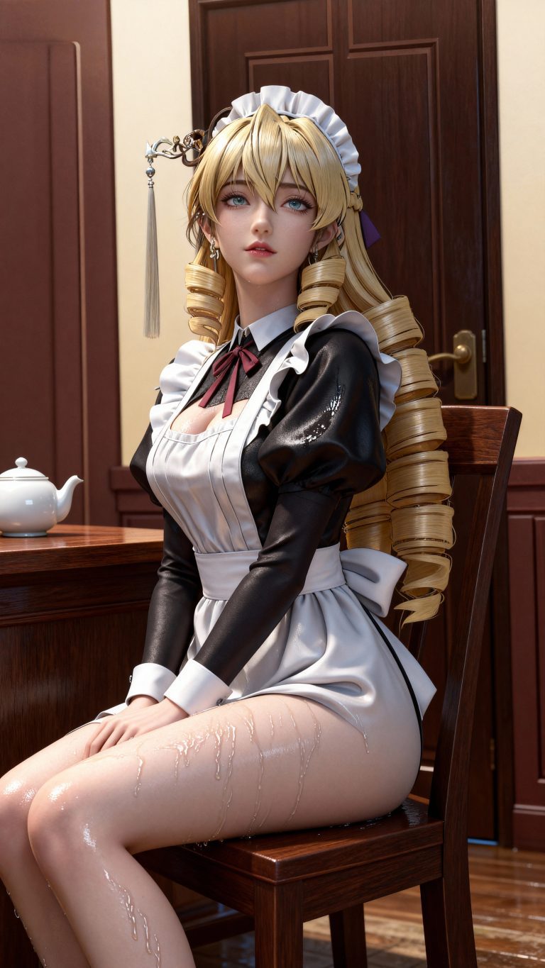 生成图片,一位少女,人物严格参考图2的服装样式、发型、发色和背景,仅仅画面风格参考参考图1,远景和特写结合,面容精致立体,带着妩媚,媚骨天成,皮肤细腻白皙,露出魅惑的表情,细微神态楚楚动人,背景烘托电影氛围,写实笔触刻画发丝层次与皮肤通透感,CG厚涂增强光影质感,魅力十足,无瑕娇嫩肌肤,成人身材,完美头身比例,九头身,大长腿,时尚、朝气蓬勃,3D渲染技术,oc渲染,专业摄影光照,大级构建画面,全画幅清晰对焦,使图像达到32K壁纸级质感,瓷光肌理(SSS次表面3层透光),量子发丝系统(12万根独立动力学)。光线追踪。裸眼3D效果。美白滤镜。高对比度,鸣潮风格。bjd质感,立体描边。湿漉漉的皮肤。