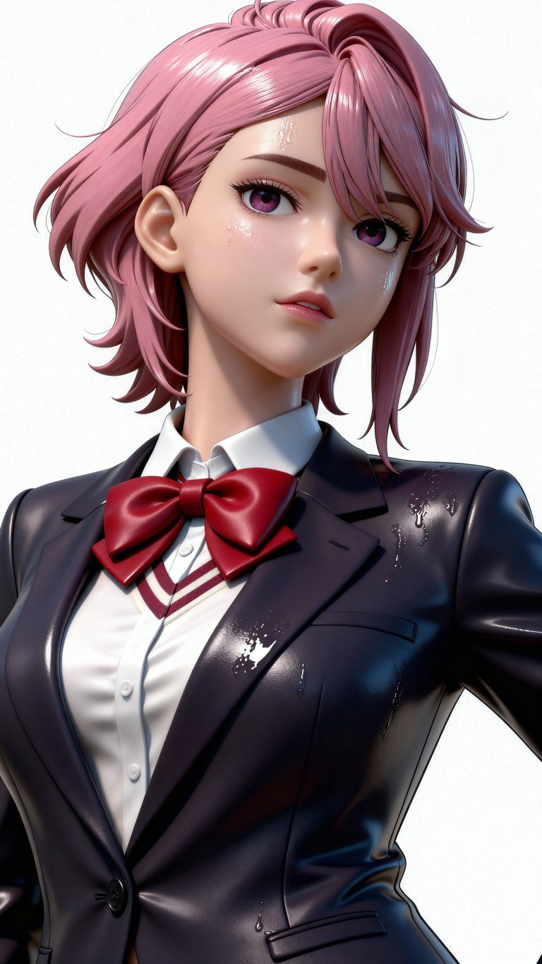 生成图片,一位少女,人物严格参考图2的服装样式、发型、发色和背景,仅仅画面风格参考参考图1,远景和特写结合,面容精致立体,带着妩媚,媚骨天成,皮肤细腻白皙,露出魅惑的表情,细微神态楚楚动人,背景烘托电影氛围,写实笔触刻画发丝层次与皮肤通透感,CG厚涂增强光影质感,魅力十足,无瑕娇嫩肌肤,成人身材,完美头身比例,九头身,大长腿,时尚、朝气蓬勃,3D渲染技术,oc渲染,专业摄影光照,大级构建画面,全画幅清晰对焦,使图像达到32K壁纸级质感,瓷光肌理(SSS次表面3层透光),量子发丝系统(12万根独立动力学)。光线追踪。裸眼3D效果。美白滤镜。高对比度,鸣潮风格。bjd质感,立体描边。湿润的皮肤。90年代日本动画上色。