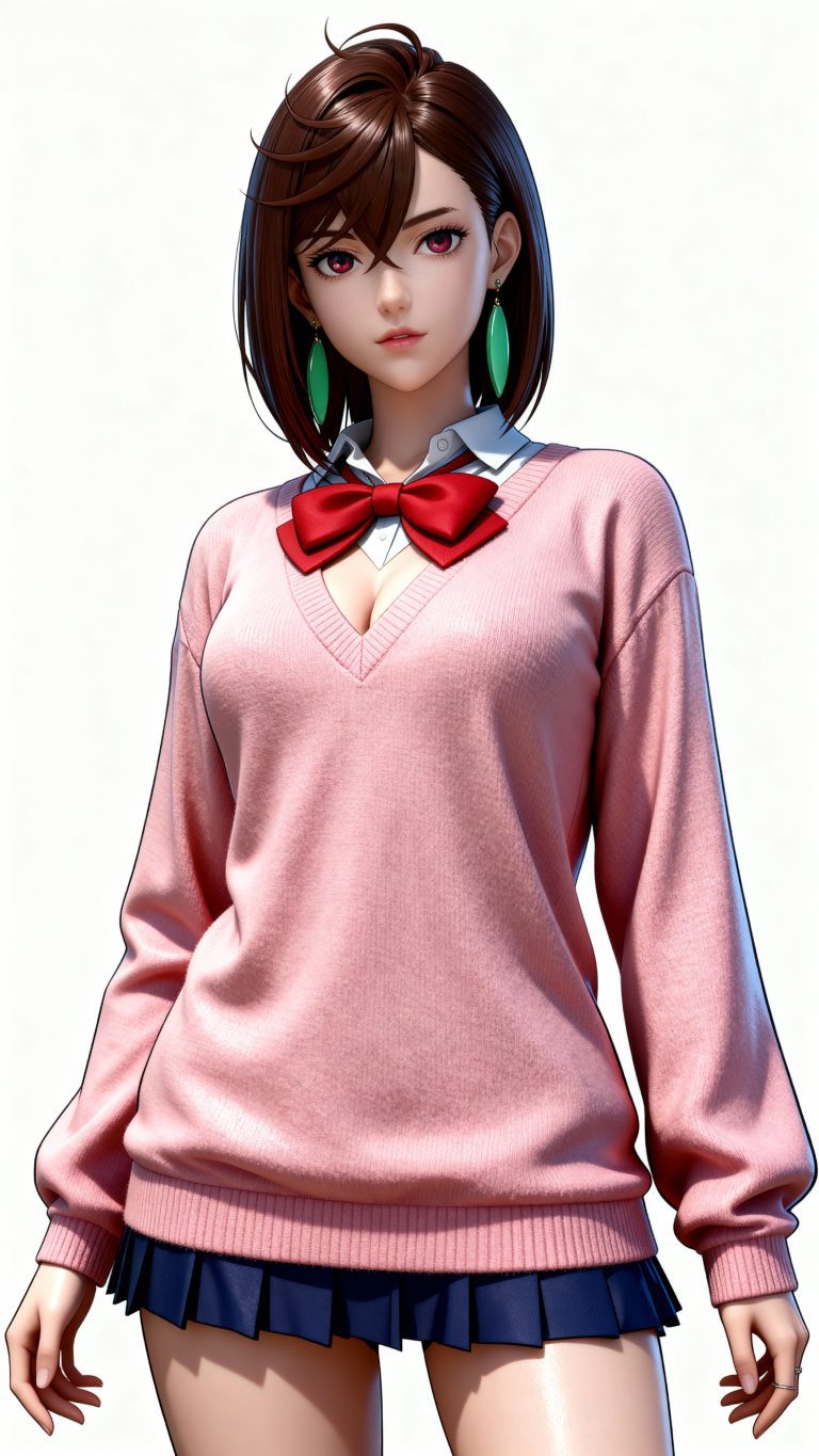 生成图片,一位少女,人物严格参考图2的服装样式、发型、发色和背景,仅仅画面风格参考参考图1,远景和特写结合,面容精致立体,带着妩媚,媚骨天成,皮肤细腻白皙,露出魅惑的表情,细微神态楚楚动人,背景烘托电影氛围,写实笔触刻画发丝层次与皮肤通透感,CG厚涂增强光影质感,魅力十足,无瑕娇嫩肌肤,成人身材,完美头身比例,九头身,大长腿,时尚、朝气蓬勃,3D渲染技术,oc渲染,专业摄影光照,大级构建画面,全画幅清晰对焦,使图像达到32K壁纸级质感,瓷光肌理(SSS次表面3层透光),量子发丝系统(12万根独立动力学)。光线追踪。裸眼3D效果。美白滤镜。高对比度,鸣潮风格。bjd质感,立体描边。湿润的皮肤。90年代日本动画上色。