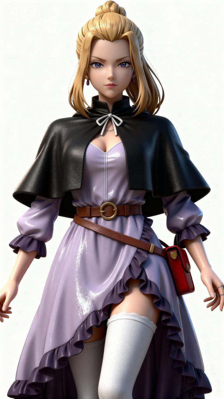 生成图片,一位少女,人物严格参考图2的服装样式、发型、发色和背景,仅仅画面风格参考参考图1,远景和特写结合,面容精致立体,带着妩媚,媚骨天成,皮肤细腻白皙,露出魅惑的表情,细微神态楚楚动人,背景烘托电影氛围,写实笔触刻画发丝层次与皮肤通透感,CG厚涂增强光影质感,魅力十足,无瑕娇嫩肌肤,成人身材,完美头身比例,九头身,大长腿,时尚、朝气蓬勃,3D渲染技术,oc渲染,专业摄影光照,大级构建画面,全画幅清晰对焦,使图像达到32K壁纸级质感,瓷光肌理(SSS次表面3层透光),量子发丝系统(12万根独立动力学)。光线追踪。裸眼3D效果。美白滤镜。高对比度,鸣潮风格。bjd质感,立体描边。湿润的皮肤。90年代日本动画上色。