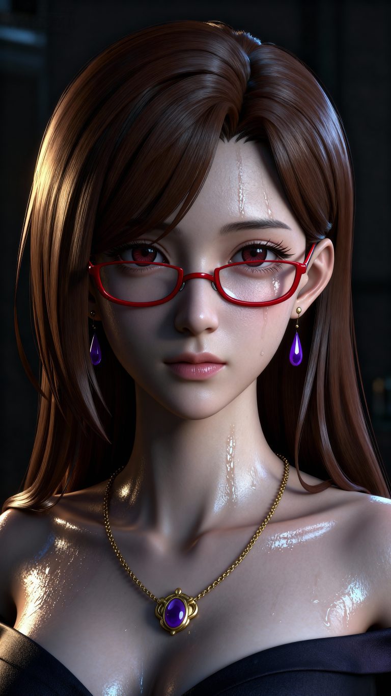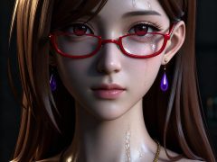 生成图片,一位少女,严格参考图1的光影和背景,参考图2的人物形象,3d立体。湿润的皮肤。
