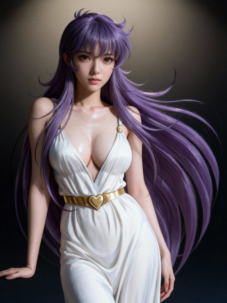 一位年轻亚洲女性,全身像,动漫转真人风格,拥有精致立体的五官,真人比例身材,皮肤白皙细腻,质感通透,面部有细微的高光和阴影,营造出立体的面部轮廓,整体妆容精致自然,背景为深色渐变,突出人物主体,光线柔和均匀,呈现出专业摄影的质感,画面清晰锐利,细节丰富,具有3D渲染的精致效果