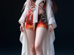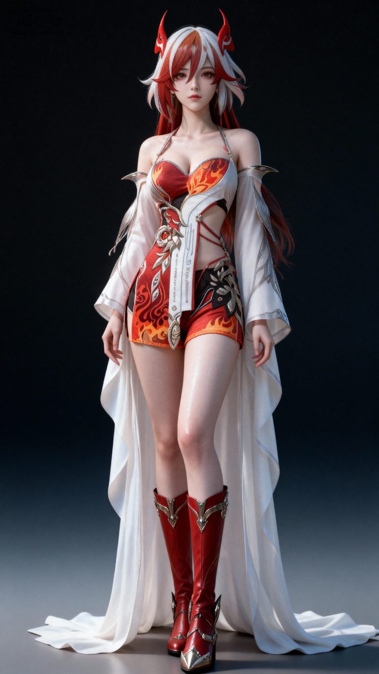 一位年轻亚洲女性,全身像,动漫转真人风格,拥有精致立体的五官,真人比例身材,人物形象参考图2,皮肤白皙细腻,质感通透,面部有细微的高光和阴影,营造出立体的面部轮廓,整体妆容精致自然,背景为深色渐变,突出人物主体,光线柔和均匀,呈现出专业摄影的质感,画面清晰锐利,细节丰富,具有3D渲染的精致效果。