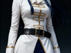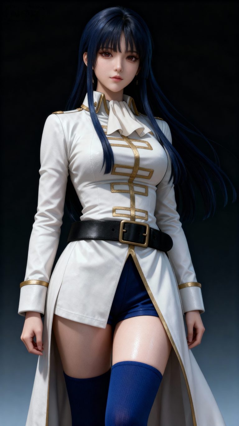 一位年轻亚洲女性,全身像,动漫转真人风格,拥有精致立体的五官,真人比例身材,人物形象参考图2,皮肤白皙细腻,质感通透,面部有细微的高光和阴影,营造出立体的面部轮廓,整体妆容精致自然,背景为深色渐变,突出人物主体,光线柔和均匀,呈现出专业摄影的质感,画面清晰锐利,细节丰富,具有3D渲染的精致效果。