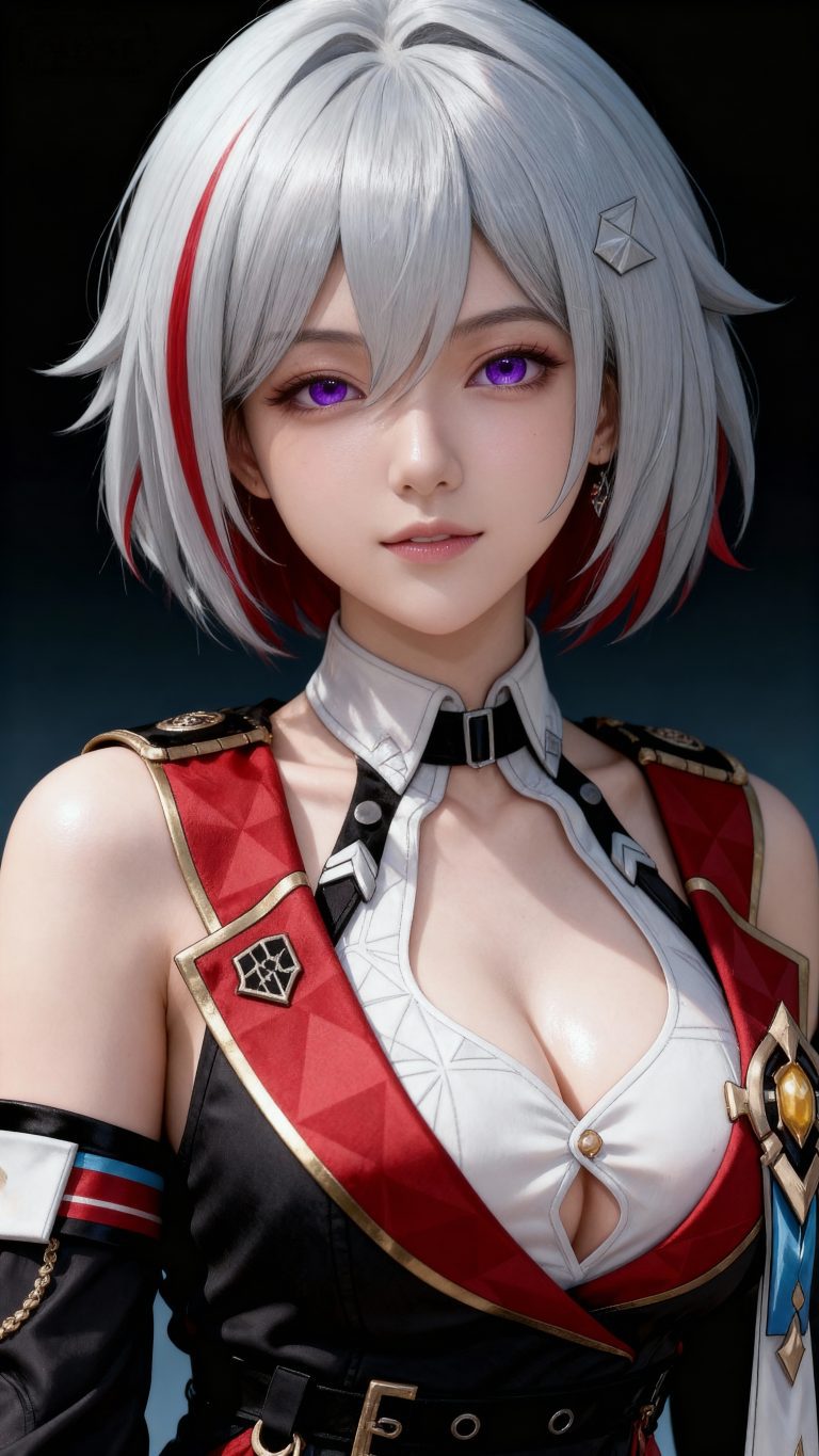 一位年轻亚洲女性,全身像,动漫转真人风格,拥有精致立体的五官,真人比例身材,人物形象参考图2,皮肤白皙细腻,质感通透,面部有细微的高光和阴影,营造出立体的面部轮廓,整体妆容精致自然,背景为深色渐变,突出人物主体,光线柔和均匀,呈现出专业摄影的质感,画面清晰锐利,细节丰富,具有3D渲染的精致效果。