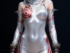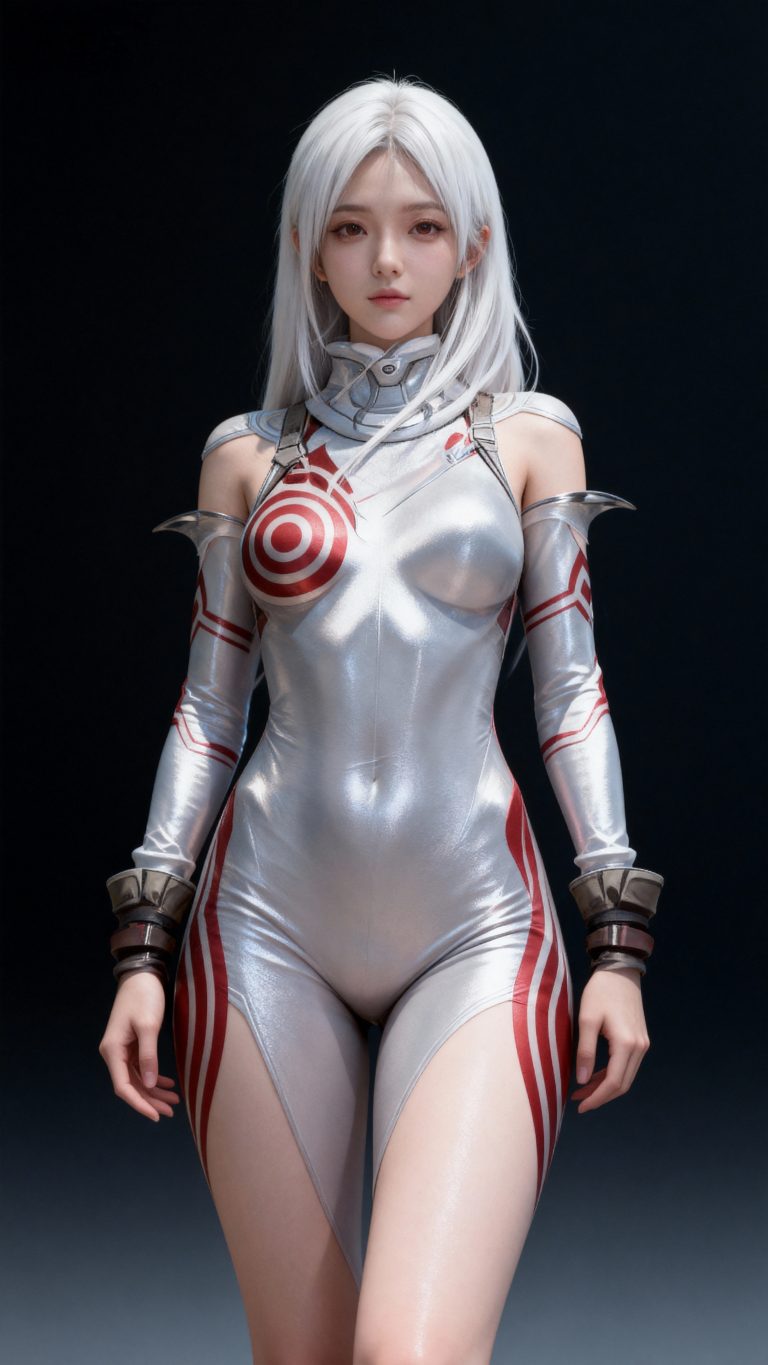 一位年轻亚洲女性,全身像,动漫转真人风格,拥有精致立体的五官,真人比例身材,人物形象参考图2,皮肤白皙细腻,质感通透,面部有细微的高光和阴影,营造出立体的面部轮廓,整体妆容精致自然,背景为深色渐变,突出人物主体,光线柔和均匀,呈现出专业摄影的质感,画面清晰锐利,细节丰富,具有3D渲染的精致效果。
