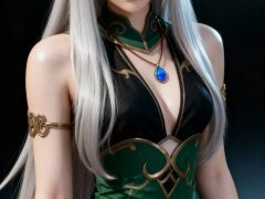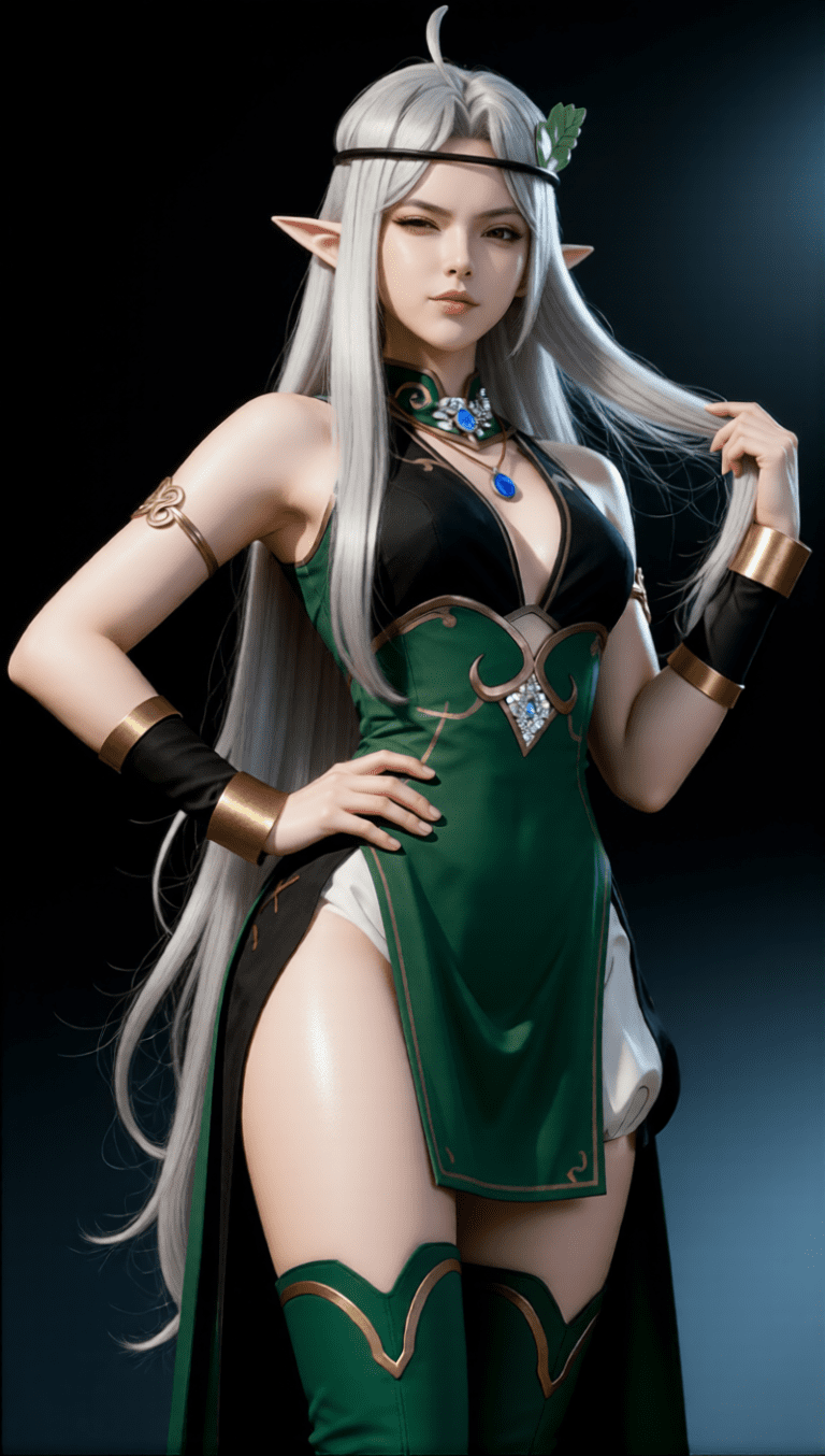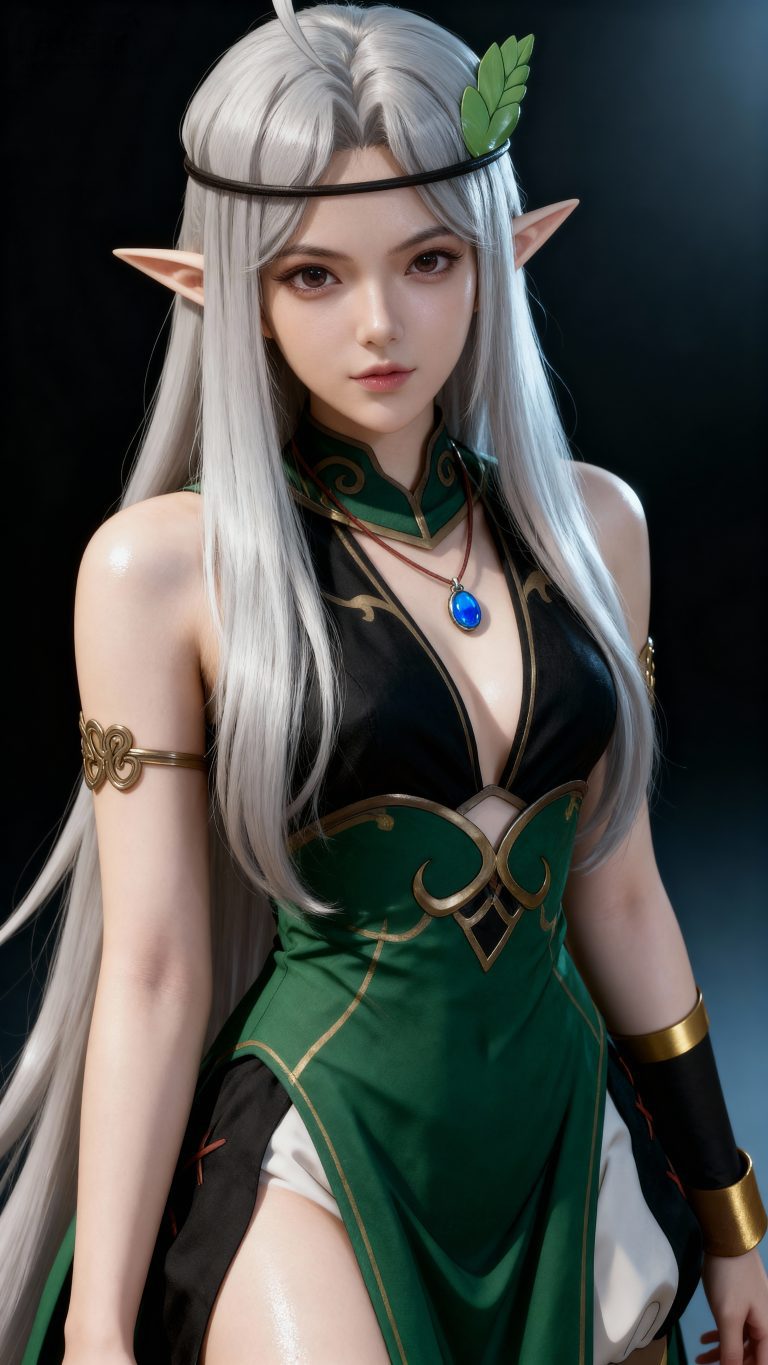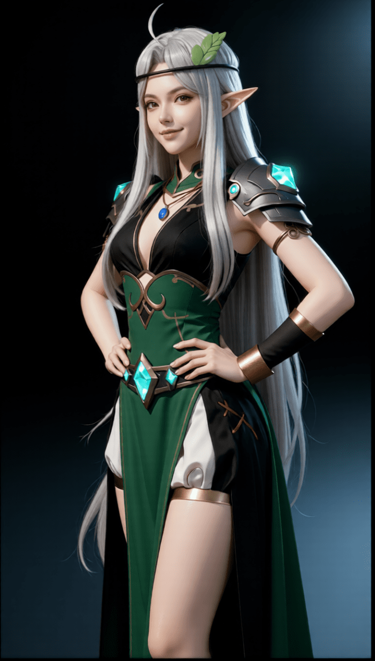 一位年轻亚洲女性,全身像,动漫转真人风格,拥有精致立体的五官,真人比例身材,人物形象参考图2,皮肤白皙细腻,质感通透,面部有细微的高光和阴影,营造出立体的面部轮廓,整体妆容精致自然,背景为深色渐变,突出人物主体,光线柔和均匀,呈现出专业摄影的质感,画面清晰锐利,细节丰富,具有3D渲染的精致效果。