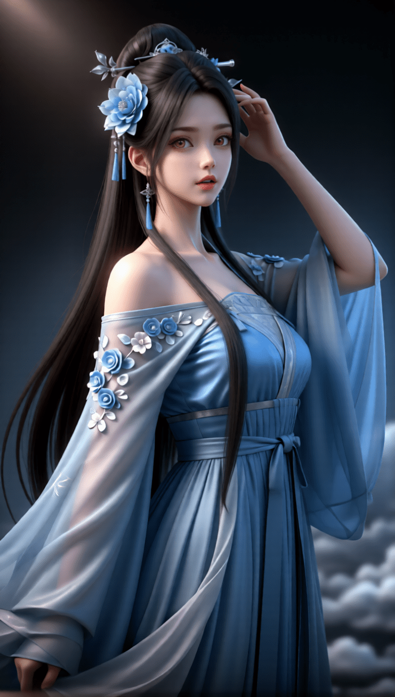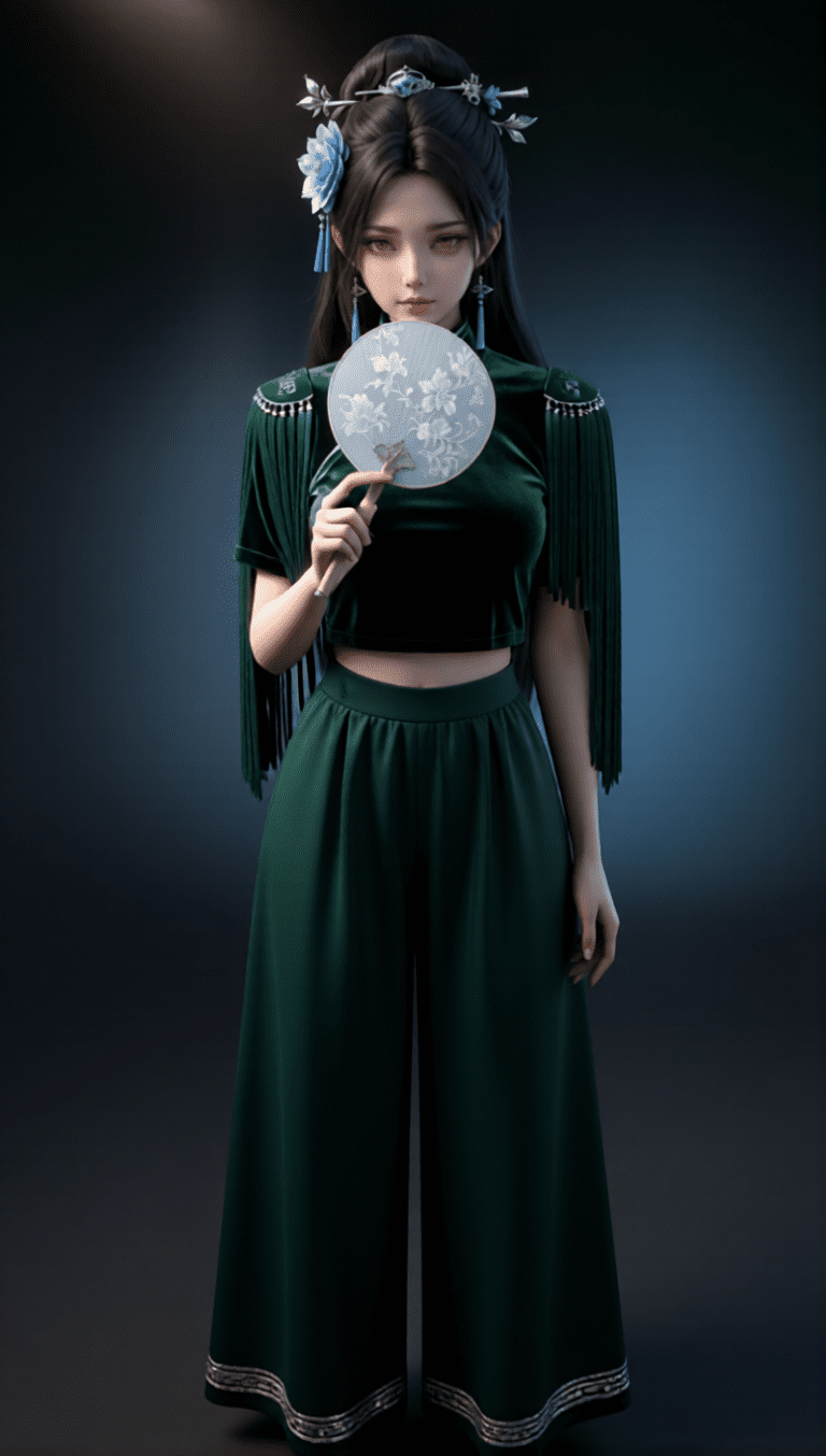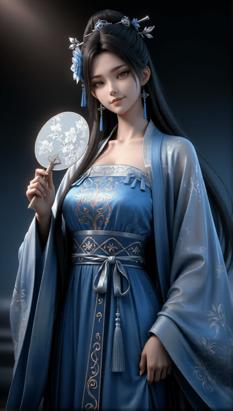 一位年轻亚洲女性,全身像,动漫转真人风格,拥有精致立体的五官,真人比例身材,人物形象参考图2,皮肤白皙细腻,质感通透,朦胧的光照,整体妆容精致自然,背景为深色渐变,突出人物主体,光线柔和均匀,呈现出专业摄影的质感,画面清晰锐利,细节丰富,具有3D渲染的精致效果。