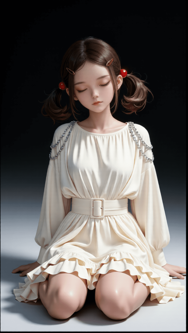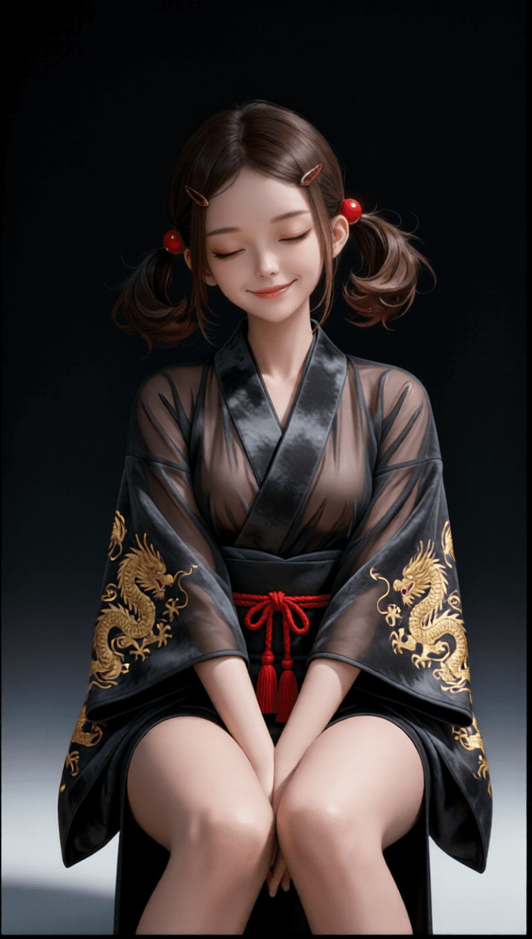一位年轻亚洲女性,全身像,动漫转真人风格,拥有精致立体的五官,真人比例身材,人物形象参考图2,皮肤白皙细腻,质感通透,朦胧的光照,整体妆容精致自然,背景为深色渐变,突出人物主体,光线柔和均匀,呈现出专业摄影的质感,画面清晰锐利,细节丰富,具有3D渲染的精致效果。