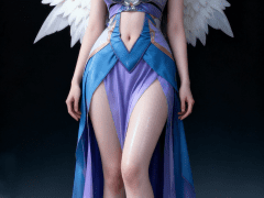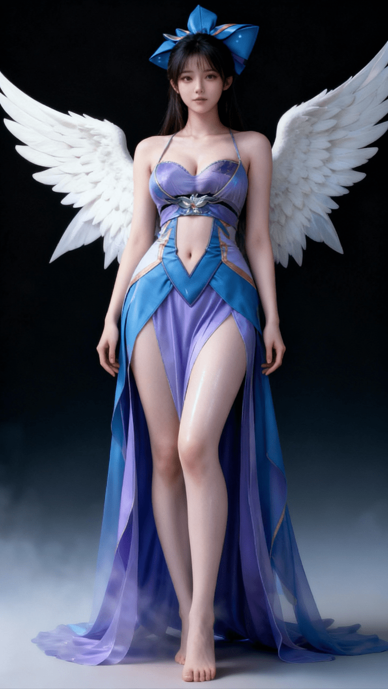 一位年轻亚洲女性,全身像,动漫转真人风格,拥有精致立体的五官,真人比例身材,人物形象参考图2,皮肤白皙细腻,质感通透,朦胧的光照,整体妆容精致自然,背景为深色渐变,突出人物主体,光线柔和均匀,呈现出专业摄影的质感,画面清晰锐利,细节丰富,具有3D渲染的精致效果。