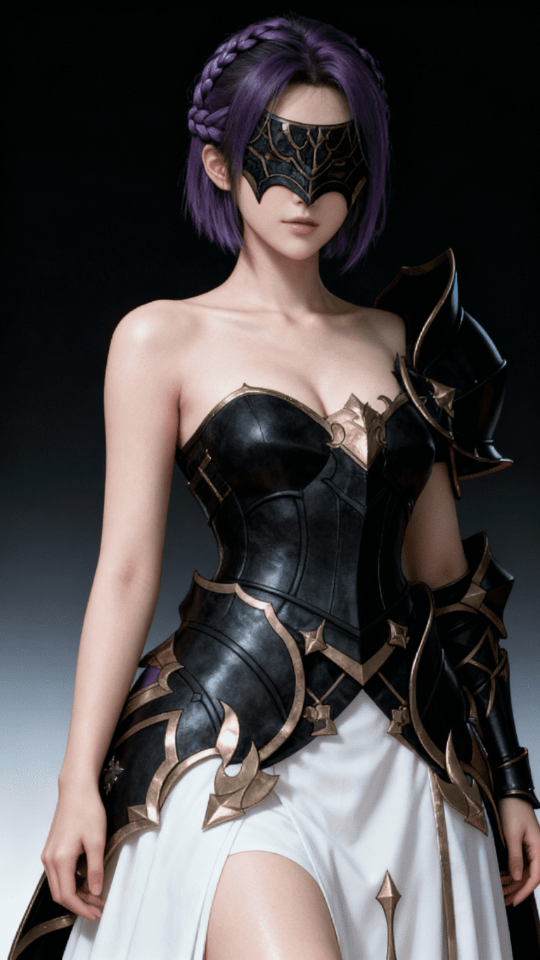 一位年轻亚洲女性,全身像,动漫转真人风格,拥有精致立体的五官,真人比例身材,人物形象参考图2,皮肤白皙细腻,质感通透,朦胧的光照,整体妆容精致自然,背景为深色渐变,突出人物主体,光线柔和均匀,呈现出专业摄影的质感,画面清晰锐利,细节丰富,具有3D渲染的精致效果。