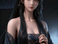 参考图1的风格,生成一位年轻亚洲女性全身像,动漫转贞本义行风格,拥有精致立体的五官,真人比例身材,皮肤白皙细腻,质感通透,朦胧的光照,整体妆容精致自然,背景为深色渐变,突出人物主体,光线柔和朦胧,呈现出专业摄影的质感,画面清晰,细节丰富,具有3D渲染的精致效果