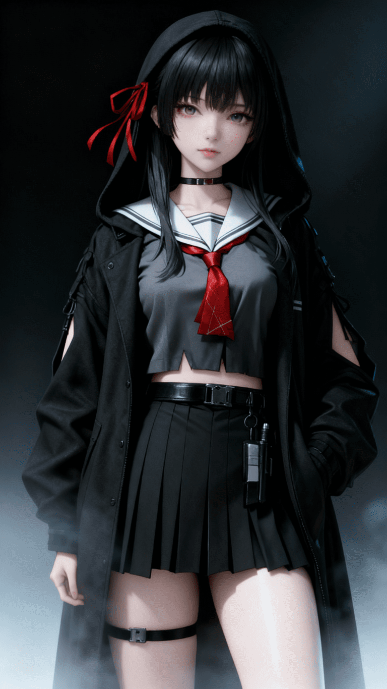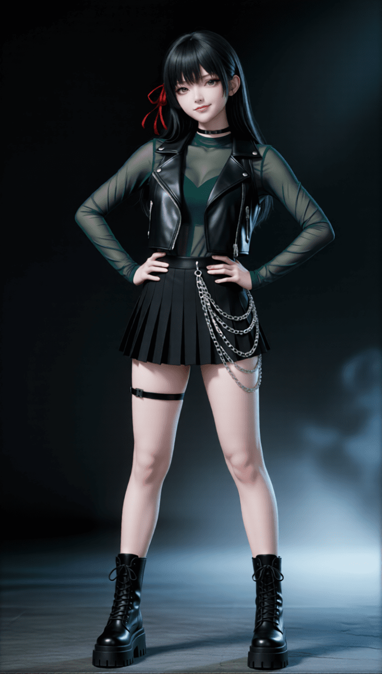 一位年轻亚洲女性,全身像,动漫转贞本义行风格,拥有精致立体的五官,真人比例身材,人物形象参考图2,皮肤白皙细腻,质感通透,朦胧的光照,整体妆容精致自然,背景为深色渐变,突出人物主体,光线柔和朦胧,呈现出专业摄影的质感,画面清晰,细节丰富,具有3D渲染的精致效果。