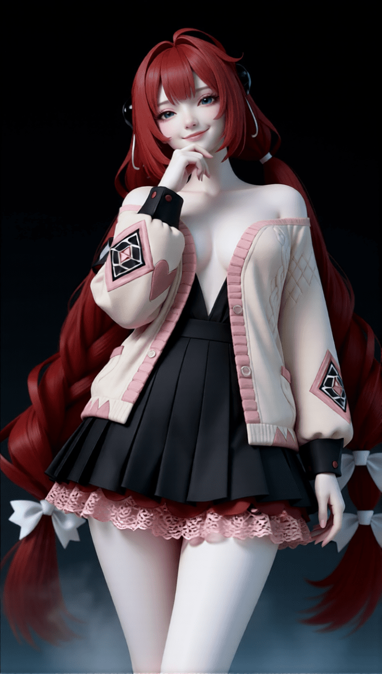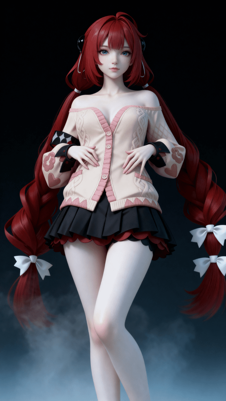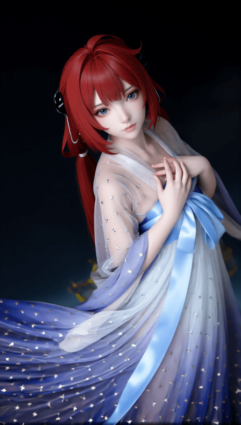 一位年轻亚洲女性,全身像,动漫转贞本义行风格,拥有精致立体的五官,真人比例身材,人物形象参考图2,皮肤白皙细腻,质感通透,朦胧的光照,整体妆容精致自然,背景为深色渐变,突出人物主体,光线柔和朦胧,呈现出专业摄影的质感,画面清晰,细节丰富,具有3D渲染的精致效果。