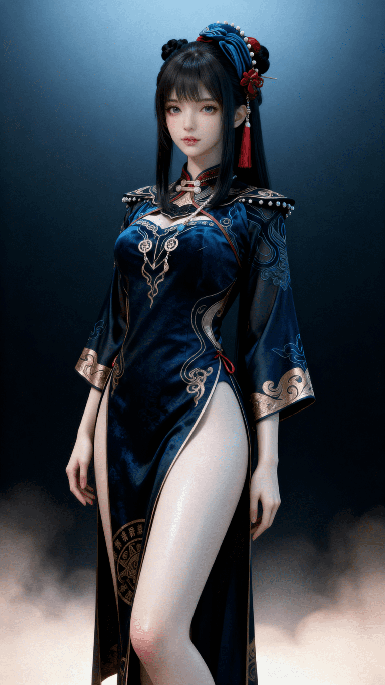 一位年轻亚洲女性,全身像,动漫转贞本义行风格,拥有精致立体的五官,真人比例身材,人物形象参考图2,皮肤白皙细腻,质感通透,朦胧的光照,整体妆容精致自然,背景为深色渐变,突出人物主体,光线柔和朦胧,呈现出专业摄影的质感,画面清晰,细节丰富,具有3D渲染的精致效果。