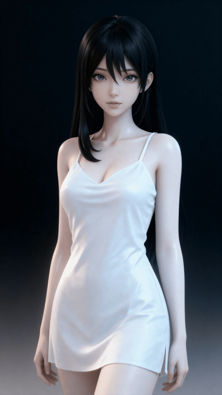 一位年轻亚洲女性,全身像,动漫转贞本义行风格,拥有精致立体的五官,真人比例身材,人物形象参考图2,皮肤白皙细腻,质感通透,朦胧的光照,整体妆容精致自然,背景为深色渐变,突出人物主体,光线柔和朦胧,呈现出专业摄影的质感,画面清晰,细节丰富,具有3D渲染的精致效果。