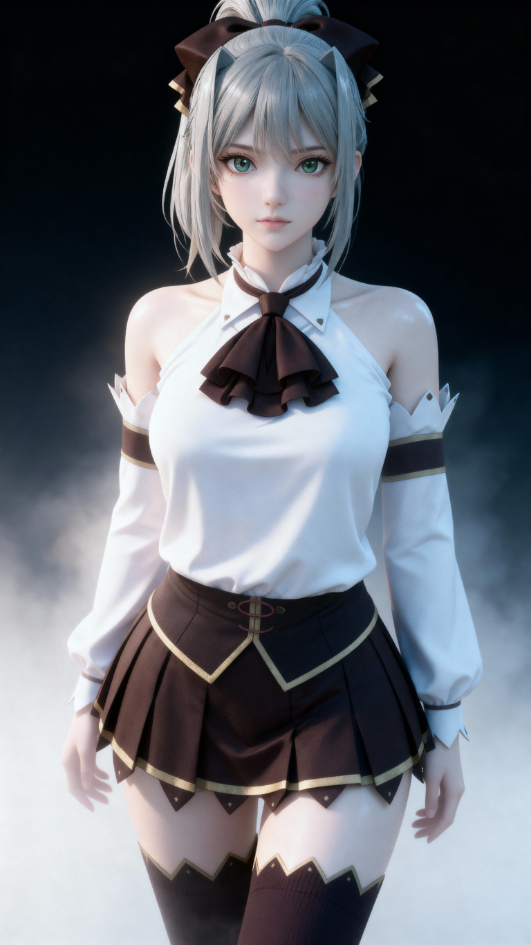 一位年轻亚洲女性,全身像,动漫转贞本义行风格,拥有精致立体的五官,真人比例身材,人物形象参考图2,皮肤白皙细腻,质感通透,朦胧的光照,整体妆容精致自然,背景为深色渐变,突出人物主体,光线柔和朦胧,呈现出专业摄影的质感,画面清晰,细节丰富,具有3D渲染的精致效果。