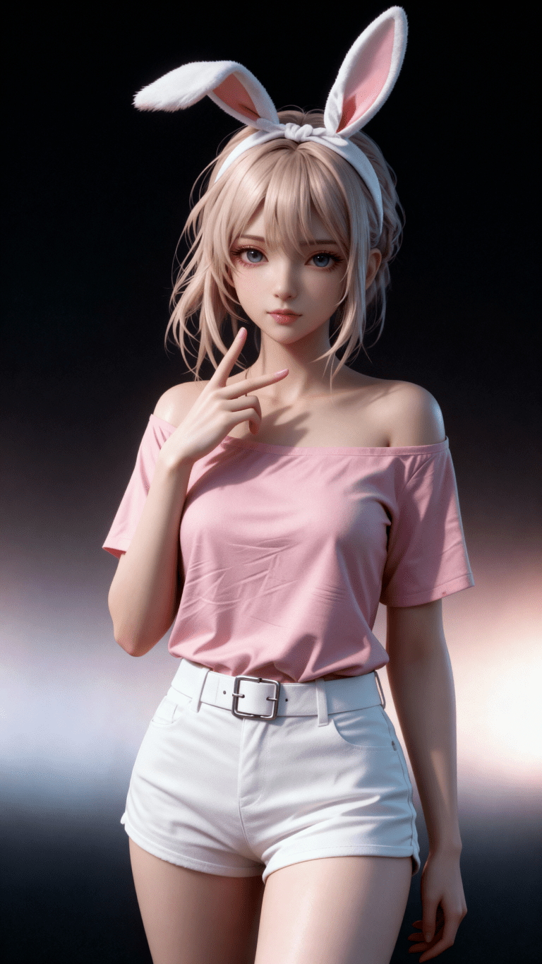 一位年轻亚洲女性,全身像,动漫转贞本义行风格,拥有精致立体的五官,真人比例身材,人物形象参考图2,皮肤白皙细腻,质感通透,朦胧的光照,整体妆容精致自然,背景为深色渐变,突出人物主体,光线柔和朦胧,呈现出专业摄影的质感,画面清晰,细节丰富,具有3D渲染的精致效果。