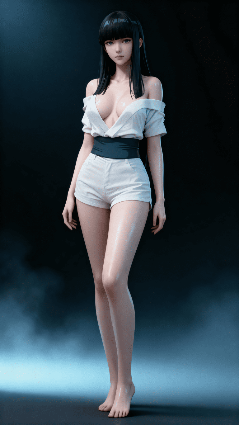 一位年轻亚洲女性,全身像,动漫转贞本义行风格,拥有精致立体的五官,真人比例身材,人物形象参考图2,皮肤白皙细腻,质感通透,朦胧的光照,整体妆容精致自然,背景为深色渐变,突出人物主体,光线柔和朦胧,呈现出专业摄影的质感,画面清晰,细节丰富,具有3D渲染的精致效果。