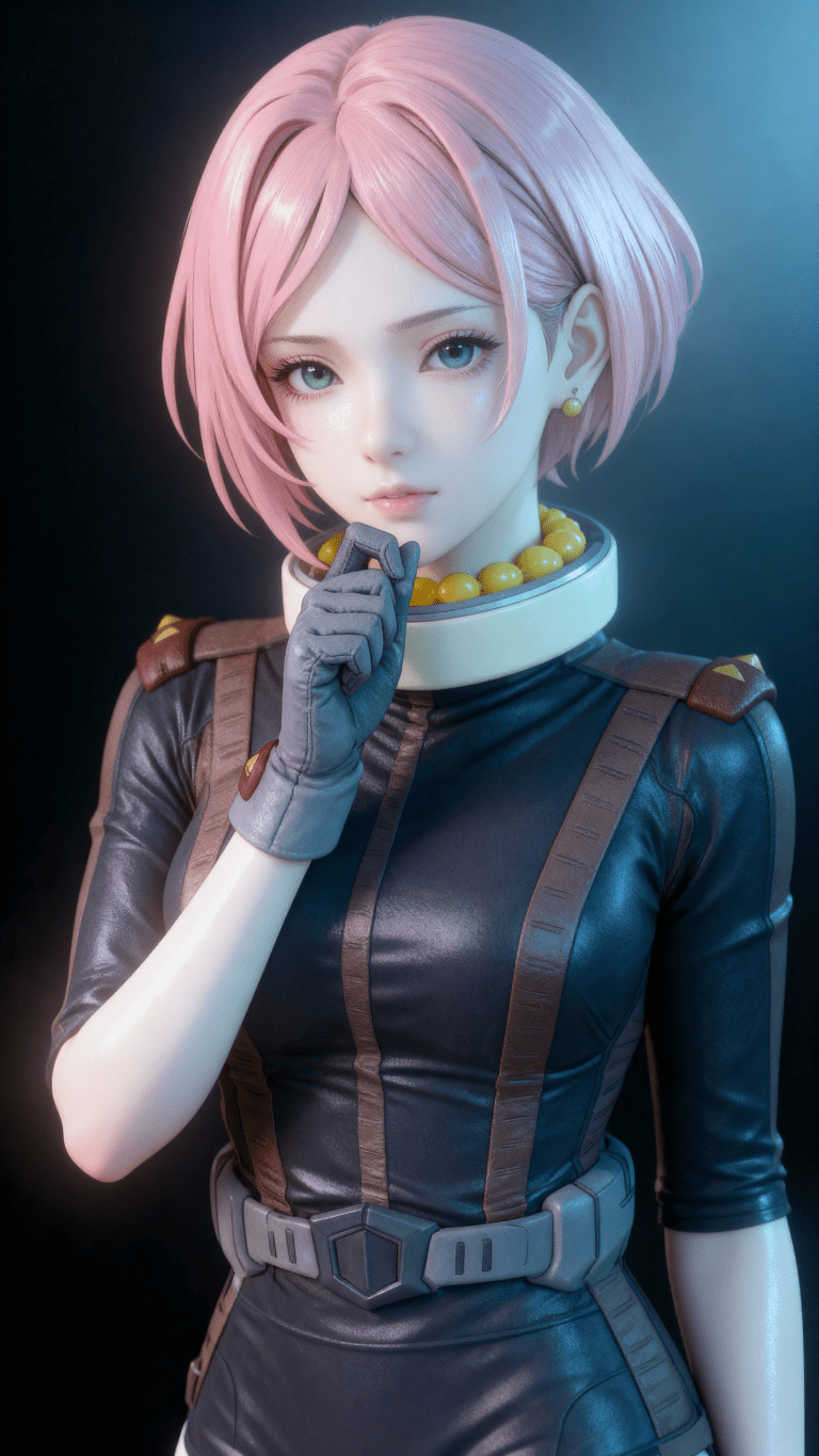 一位年轻亚洲女性,全身像,动漫转贞本义行风格,拥有精致立体的五官,真人比例身材,人物形象参考图2,皮肤白皙细腻,质感通透,朦胧的光照,整体妆容精致自然,背景为深色渐变,突出人物主体,光线柔和朦胧,呈现出专业摄影的质感,画面清晰,细节丰富,具有3D渲染的精致效果。