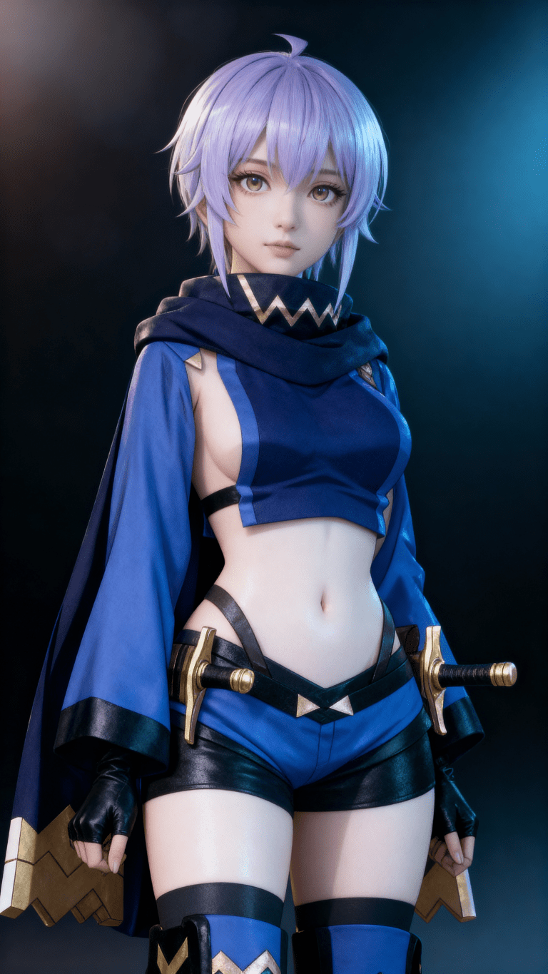 一位年轻亚洲女性,全身像,动漫转贞本义行风格,拥有精致立体的五官,真人比例身材,人物形象参考图2,皮肤白皙细腻,质感通透,朦胧的光照,整体妆容精致自然,背景为深色渐变,突出人物主体,光线柔和朦胧,呈现出专业摄影的质感,画面清晰,细节丰富,具有3D渲染的精致效果。