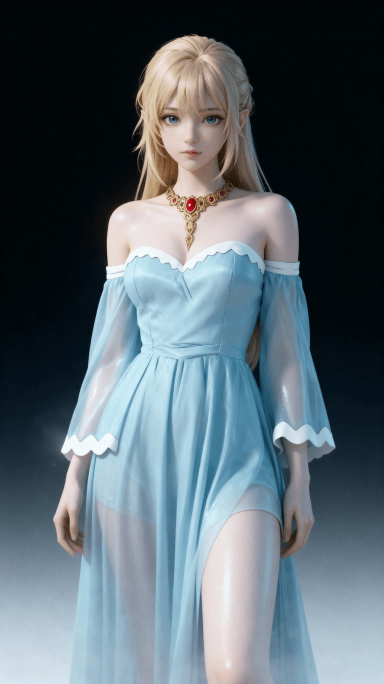 一位年轻亚洲女性,全身像,动漫转贞本义行风格,拥有精致立体的五官,真人比例身材,人物形象参考图2,皮肤白皙细腻,质感通透,朦胧的光照,整体妆容精致自然,背景为深色渐变,突出人物主体,光线柔和朦胧,呈现出专业摄影的质感,画面清晰,细节丰富,具有3D渲染的精致效果。